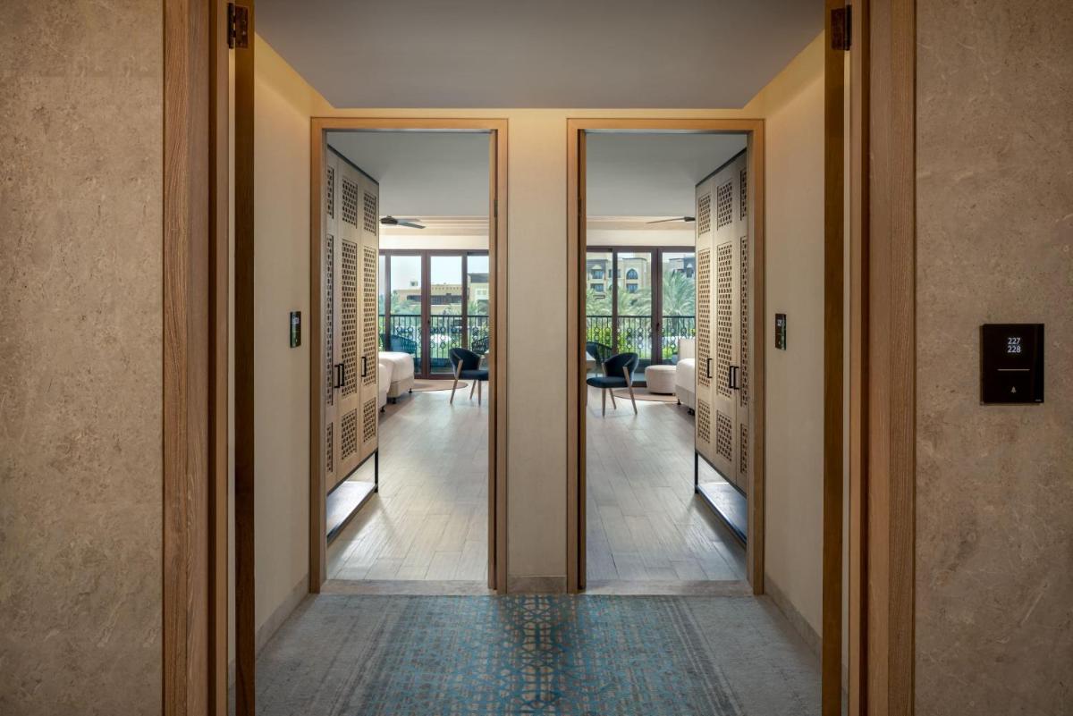 La suite Saadiyat presenta 2 camere da letto, ideali per un soggiorno rilassante e confortevole con la famiglia o gli amici. Con la sua superficie di circa 170 m², questo lussuoso alloggio offre un grande spazio e un ambiente sofisticato. La sistemazione dispone di letti king-size o singoli, un’ampia zona pranzo e giorno, arredi contemporanei con tonalità neutre e una splendida vista sulla spiaggia, ideale per immergervi nell’atmosfera di Saadiyat. Potrete approfittare dell’accesso esclusivo al Club Rotana Lounge, dove vi attendono servizi personalizzati e un’assistenza dedicata.