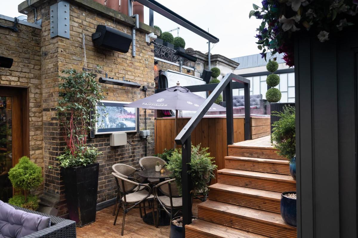 Uno degli elementi distintivi è la sua spettacolare terrazza sul tetto, un gioiello nascosto che domina i tetti di Soho. Quest'area esterna ospita un bar, ideale per cocktail serali, ed è nota per la sua vasca idromassaggio (hot tub), offrendo agli ospiti un'oasi di relax inaspettata nel centro frenetico della città. È un luogo esclusivo per eventi privati e serate glam.