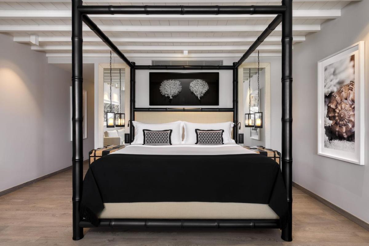 La caratteristica più distintiva è l'accesso esclusivo alla sua spiaggia privata a Ornos Bay, un lusso raro a Mykonos. Qui, gli ospiti possono godere di lettini lussuosi e un servizio impeccabile. Il resort ospita anche il famoso Buddha-Bar Beach Mykonos, un epicentro di cucina asiatica e cocktail esclusivi in riva al mare.
