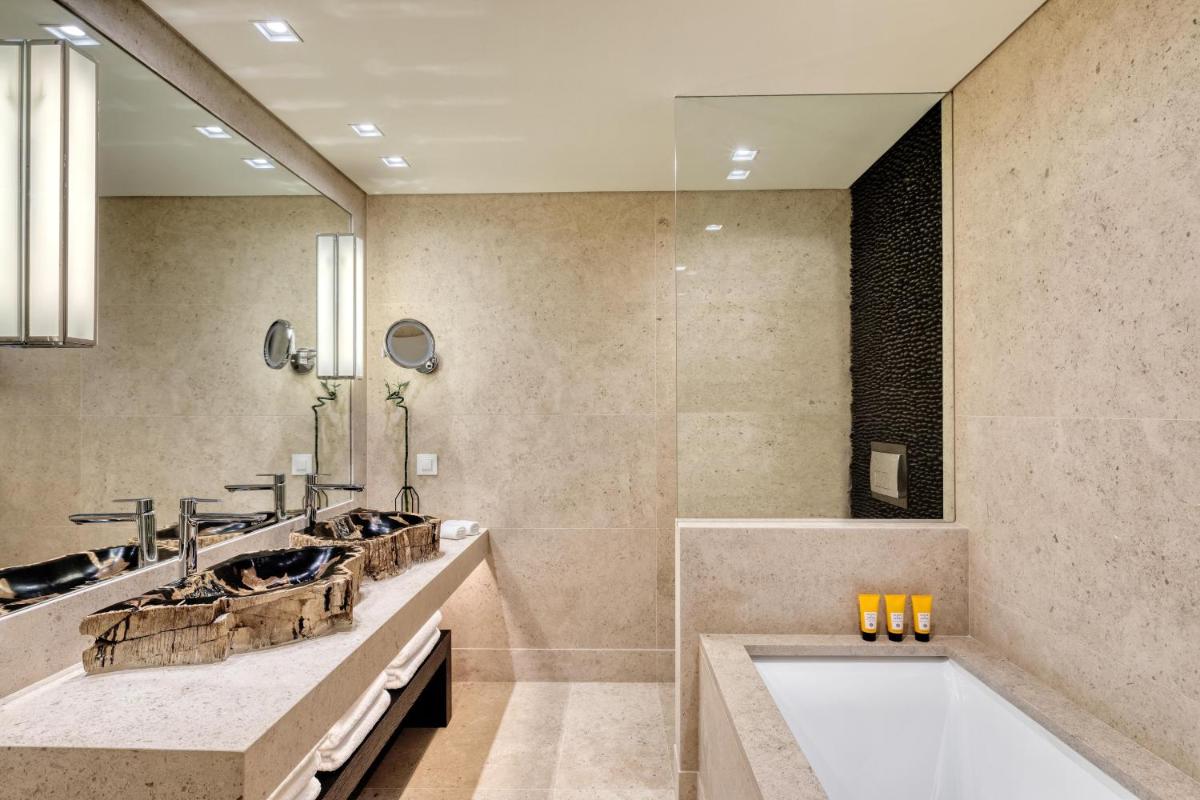Le camere, le suite e le ville private sono arredate con uno stile impeccabile, combinando tonalità chiare e tessuti naturali con un design moderno. Molte sistemazioni offrono piscine a sfioro private o vasche idromassaggio, garantendo un rifugio di lusso con viste mozzafiato sul blu intenso del mare.