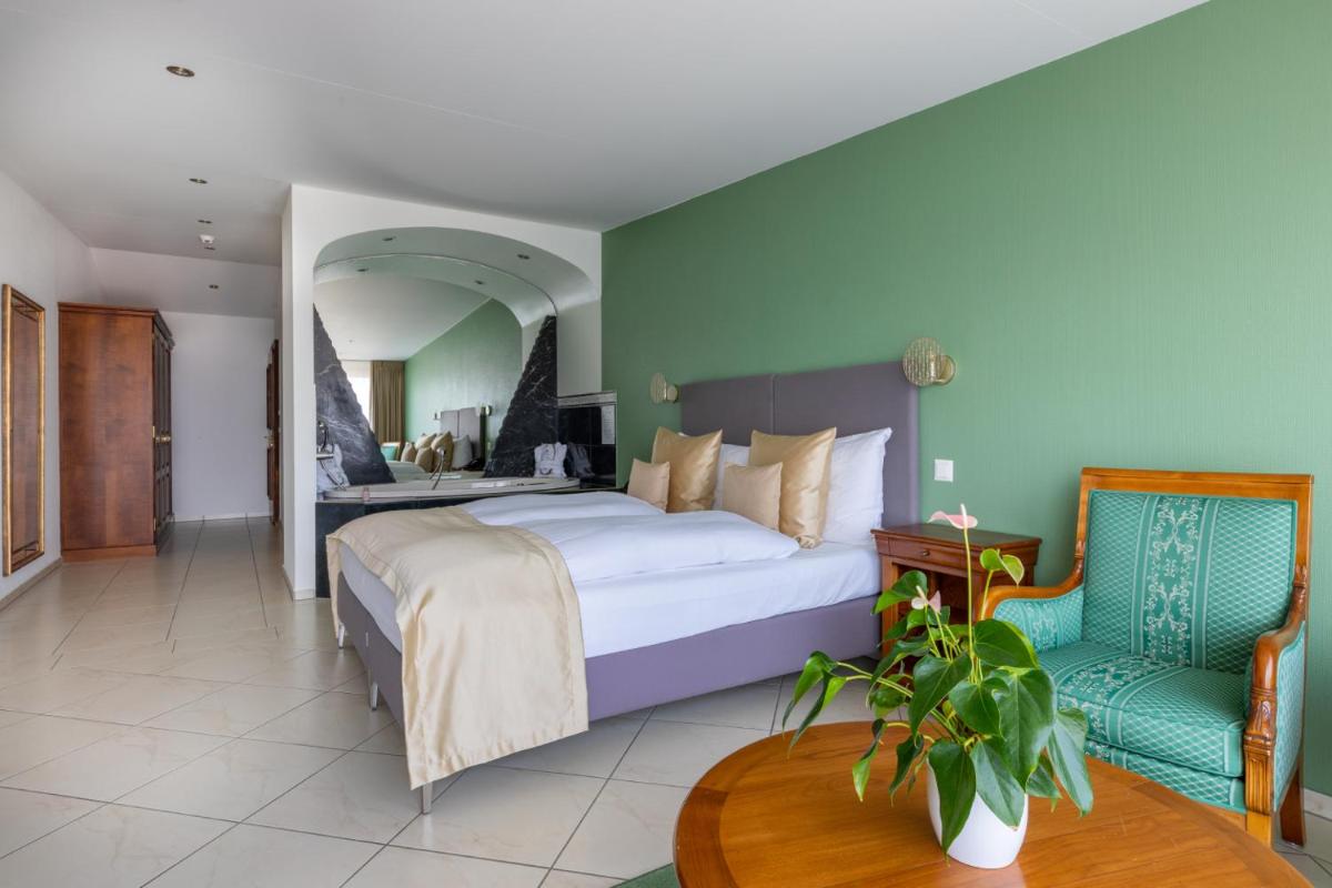 La suite è dotata di vasca da bagno con idromassaggio e offre una vista unica sul Lago dei Quattro Cantoni e sulle montagne della Svizzera centrale.
