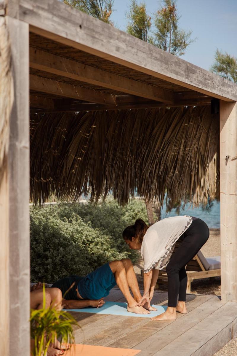 La splendida piscina fronte mare è circondata da comodi lettini in corda e lino, ideali per chi cerca il relax totale. Per gli ospiti più attivi, il resort offre un accesso immediato a uno dei migliori spot al mondo per il vento. Un'esperienza da non perdere è la sessione di yoga al mattino sul deck in legno, mentre il sole sorge dietro le colline dell'isola, preparando corpo e mente a una giornata di puro piacere cicladico.