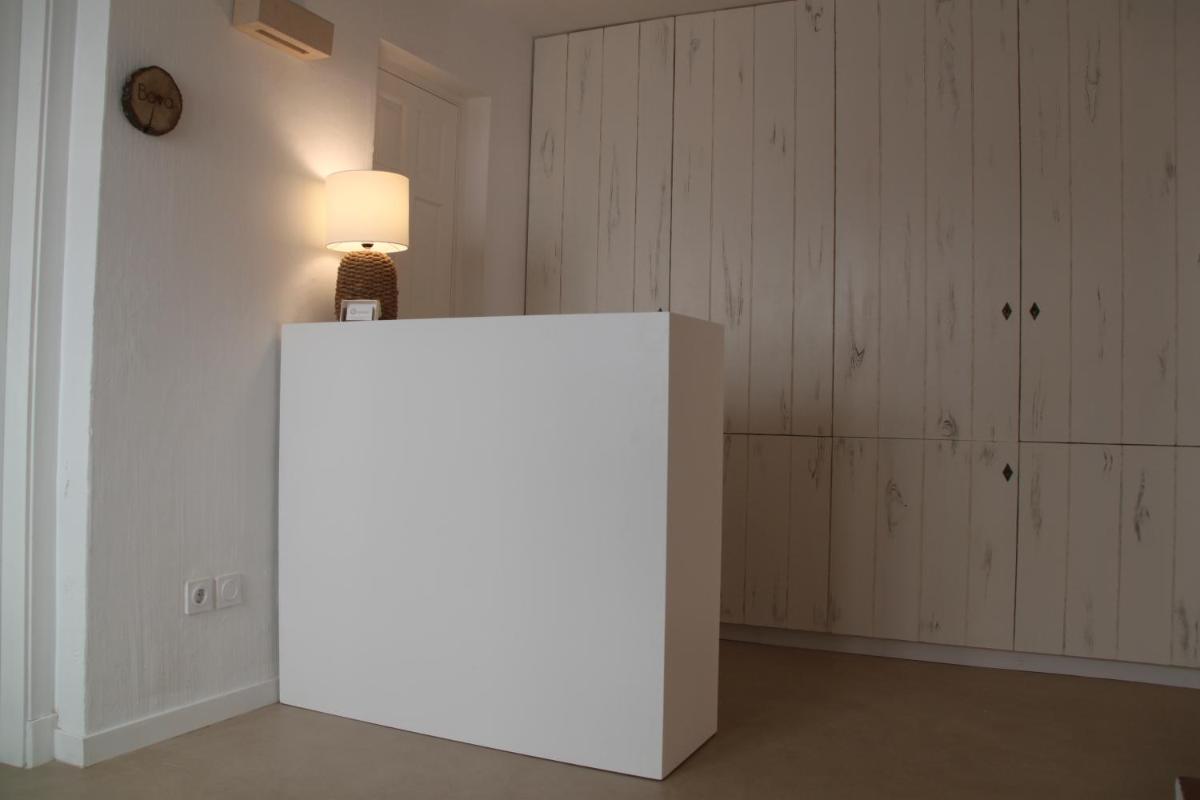 Il design degli interni è rustico-chic, con un'enfasi sui materiali naturali come pietra, legno e le tradizionali piastrelle idrauliche minorchine. L'hotel espone anche oggetti e opere d'arte realizzati con l'erba sparto, mantenendo viva l'eredità artigianale.