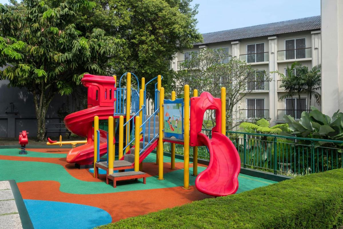 L'hotel è rinomato per i suoi ampi spazi esterni, una rarità a Bandung. Il pezzo forte è la grande piscina a forma libera con una suggestiva cascata, circondata da vegetazione. È l'ambiente perfetto per le famiglie e per chi desidera rilassarsi e godere del clima fresco di Bandung.