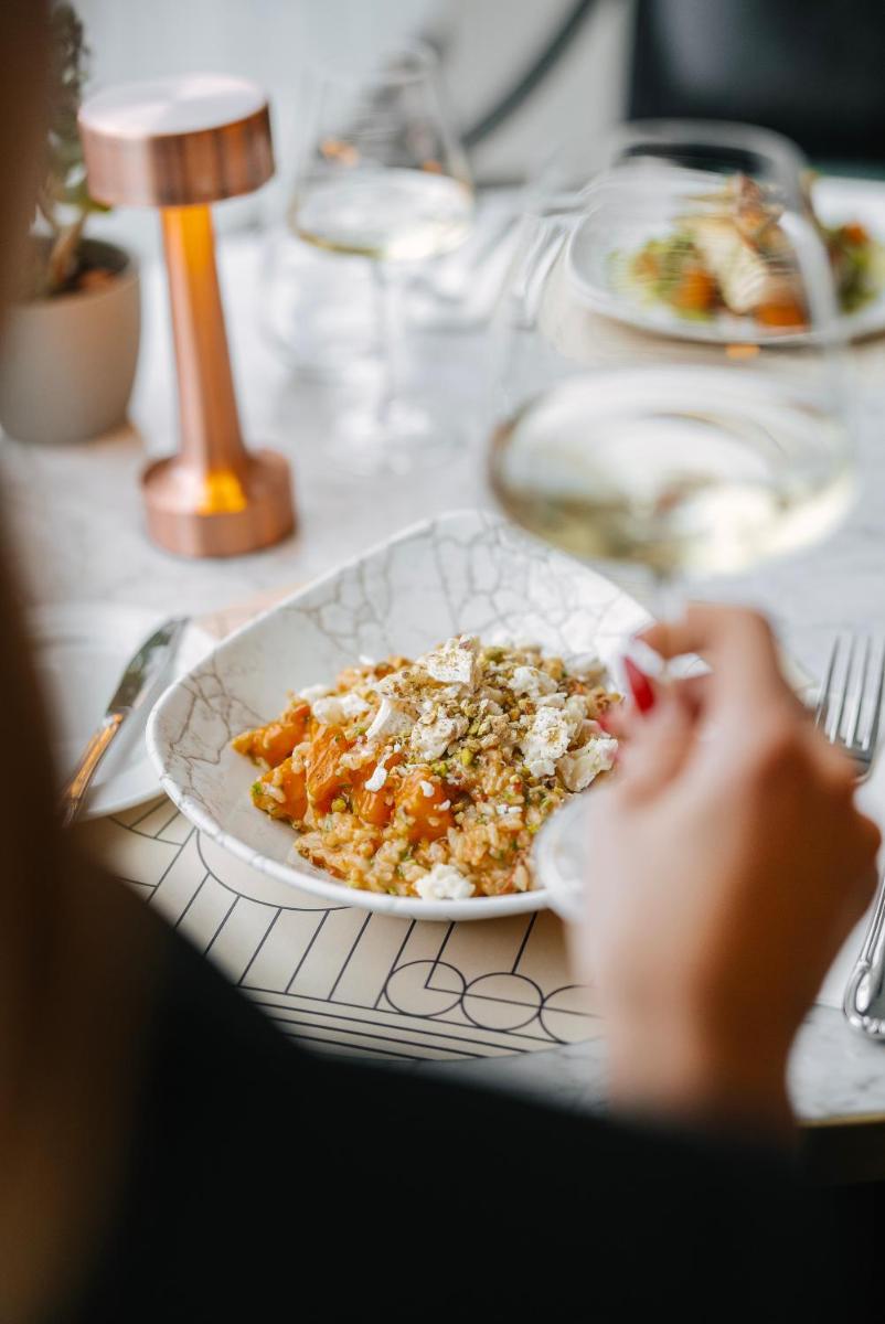 L'offerta gastronomica celebra sia i sapori bulgari che la cucina internazionale. Il ristorante è noto per il suo servizio raffinato e i piatti preparati con cura. L'hotel è anche famoso per i suoi eventi e banchetti, che ne sottolineano l'importanza come polo sociale della capitale.