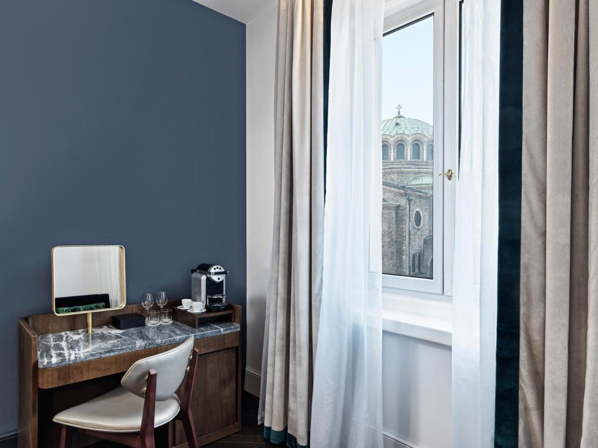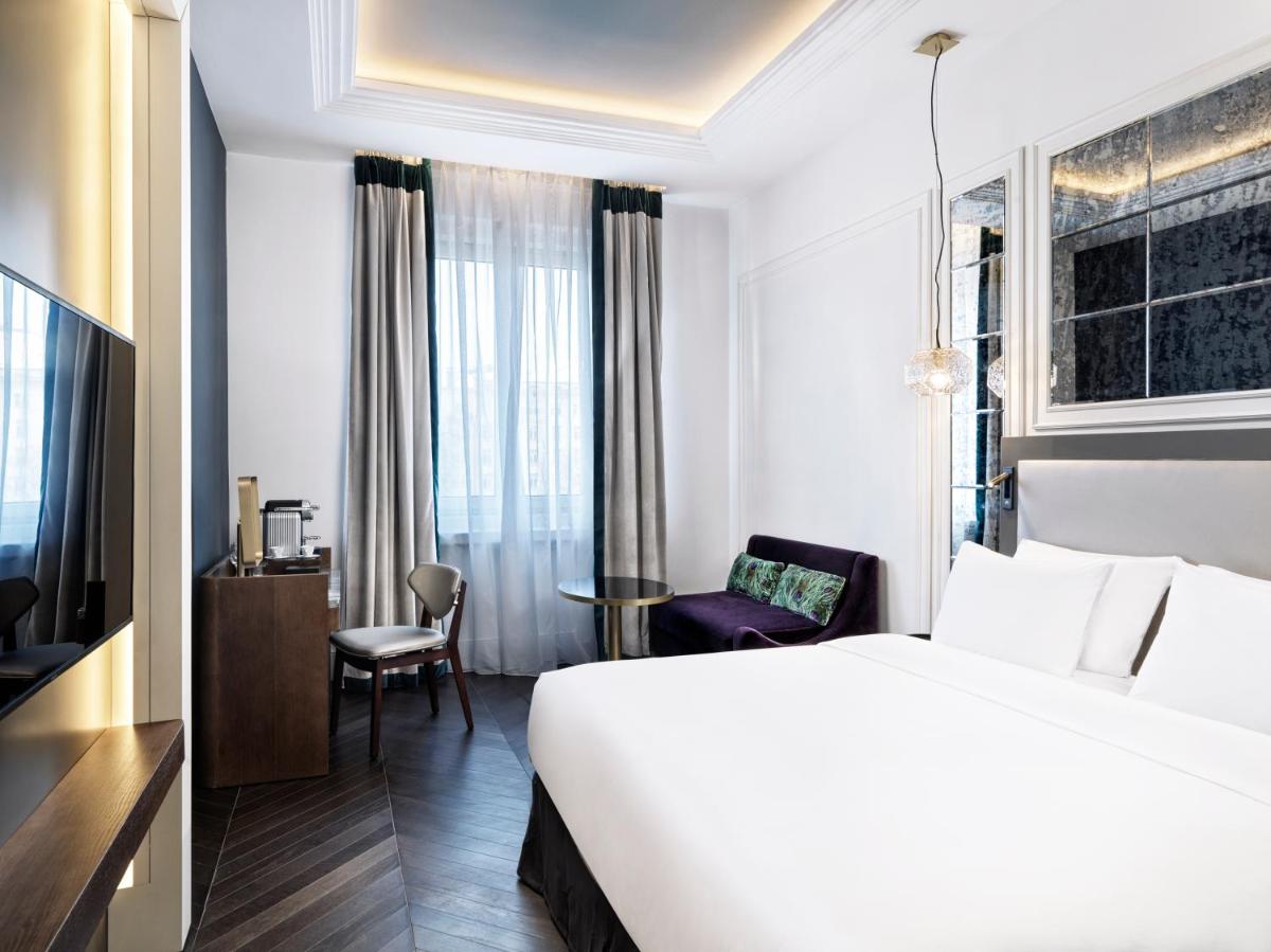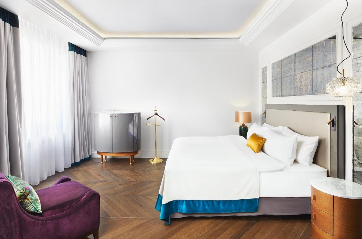 Le camere e le suite sono arredate in uno stile classico ed elegante, con un'attenzione particolare ai tessuti di lusso e agli arredi di alta qualità. Molte offrono viste sul centro città, e tutte sono progettate per garantire il massimo del comfort e della quiete, riflettendo un'atmosfera di lusso tradizionale.