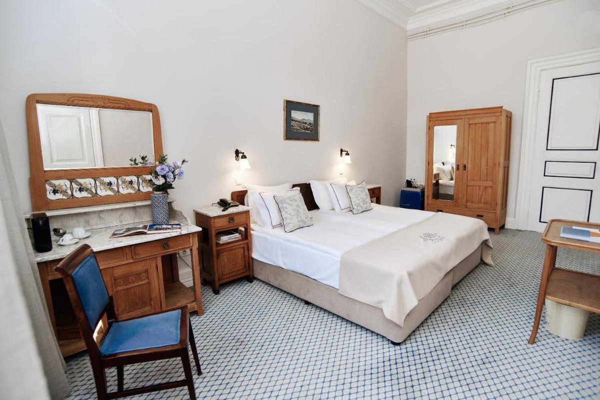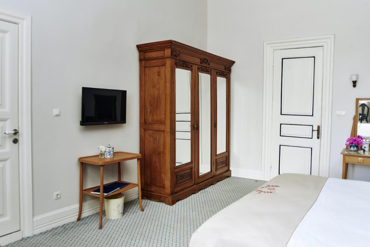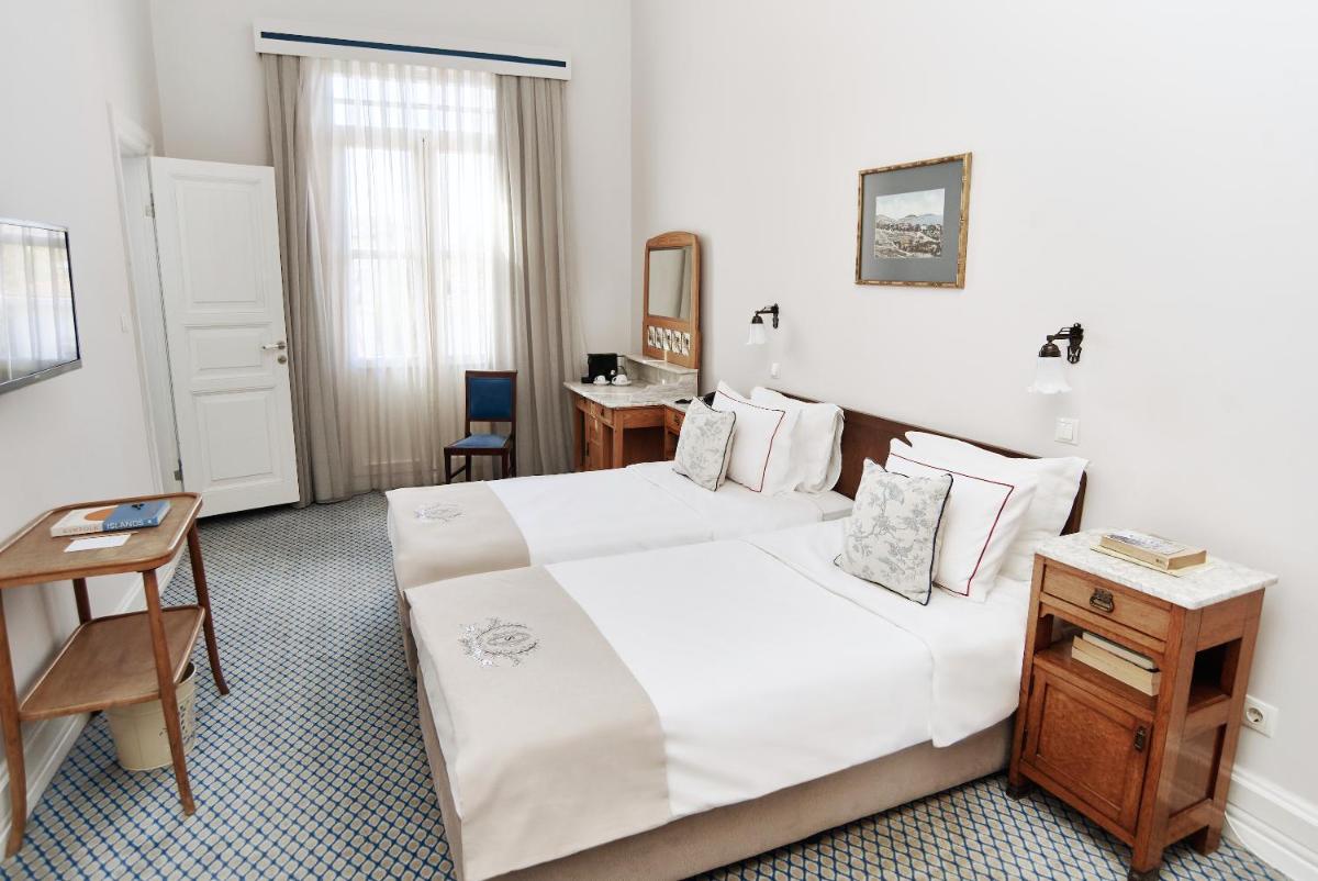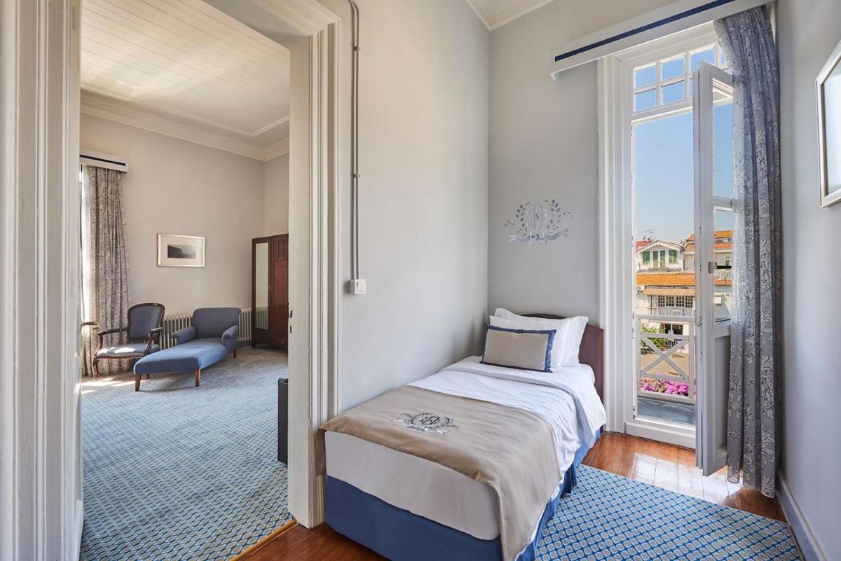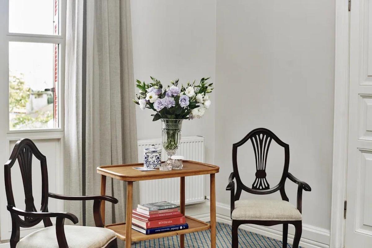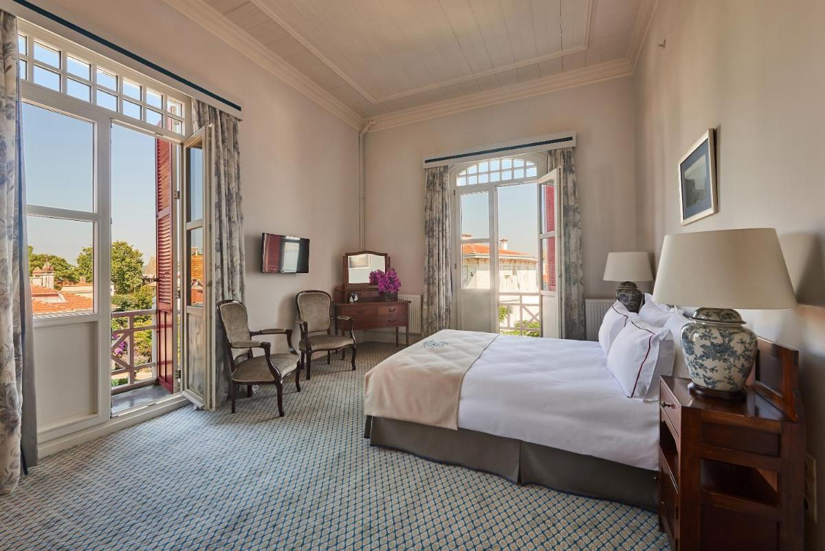 Le 60 camere, incluse 9 suite, sono decorate per riflettere la sua eredità storica. Molte offrono vista sull'isola o sul mare, permettendo agli ospiti di godere del panorama del Mar di Marmara o del verde circostante. L'assenza di auto sull'isola assicura una quiete ineguagliabile, interrotta solo dallo scalpitio dei cavalli.