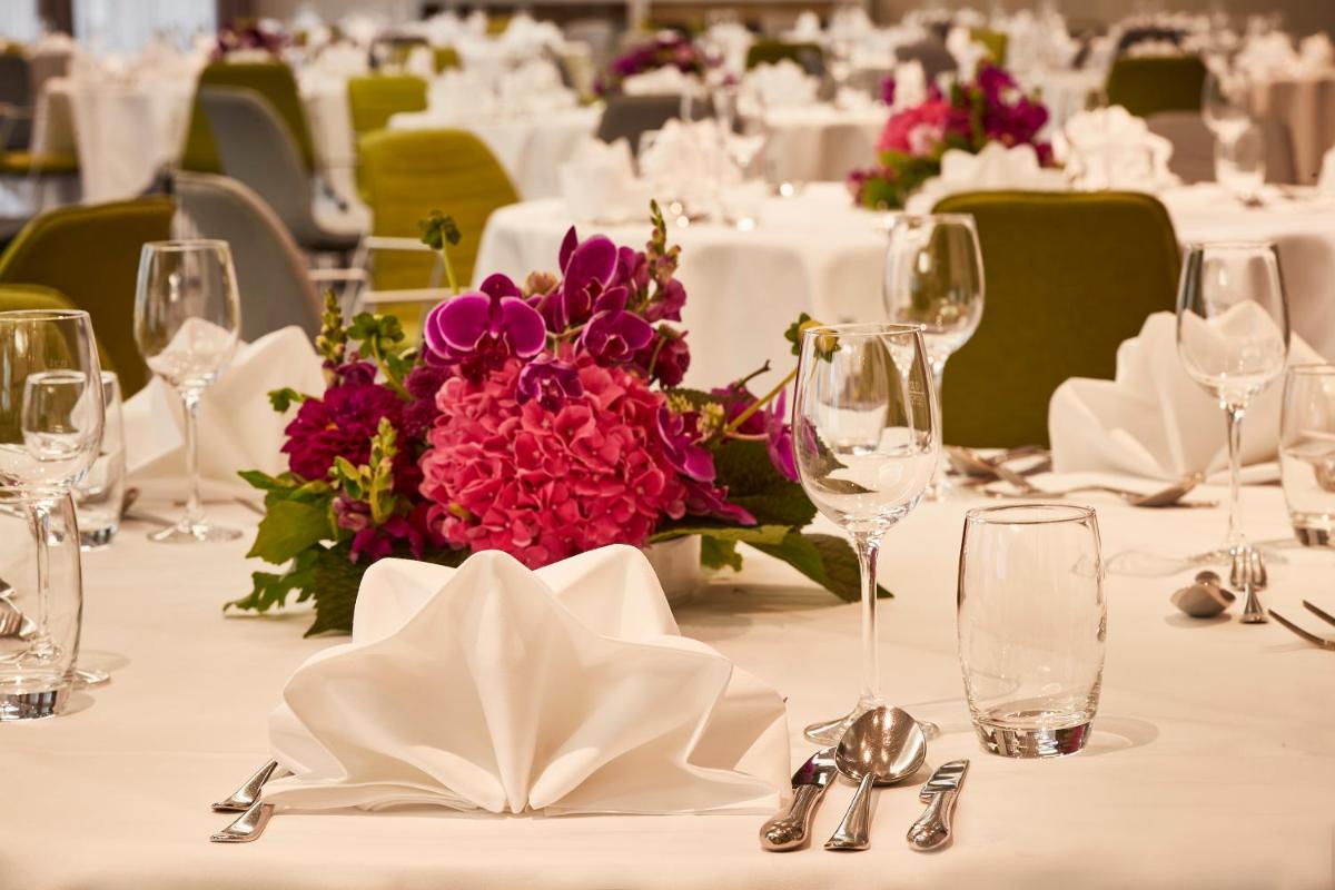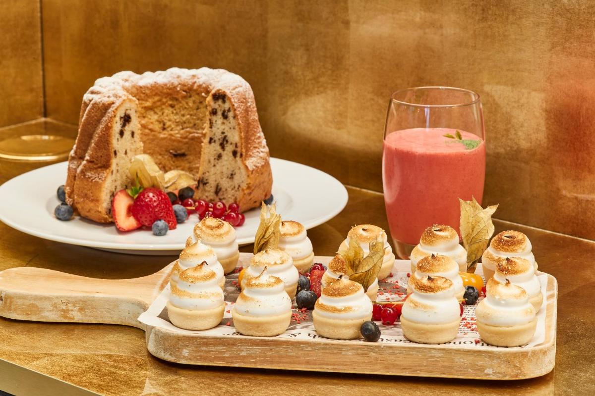 Il punto di incontro è il Café, Bar & Lounge, che si ispira ai tradizionali caffè viennesi, offrendo una selezione di pasticceria classica, caffè e un menu di bevande sofisticato. È un luogo perfetto per una colazione regale o per un drink serale in un ambiente chic.
