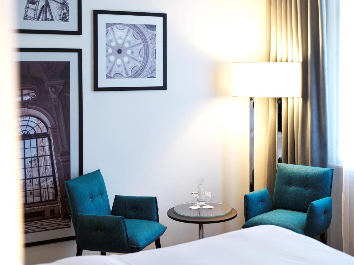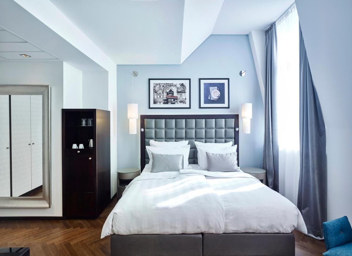 Le camere sono state elegantemente rinnovate, riflettendo un design che omaggia la storia viennese con un tocco di modernità. L'uso di legno scuro e tessuti di alta qualità crea un ambiente caldo e accogliente. Molte stanze offrono una vista sulle tranquille vie del centro o sull'architettura circostante.