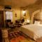 Le suite sono state create all'interno di antiche grotte e case in pietra, restaurate con cura per mantenere l'autenticità pur fornendo comfort moderni. L'arredamento è tradizionale turco, con mobili in legno massiccio, tappeti anatolici e caminetti, creando un'atmosfera calda, accogliente e storica in ogni ambiente.