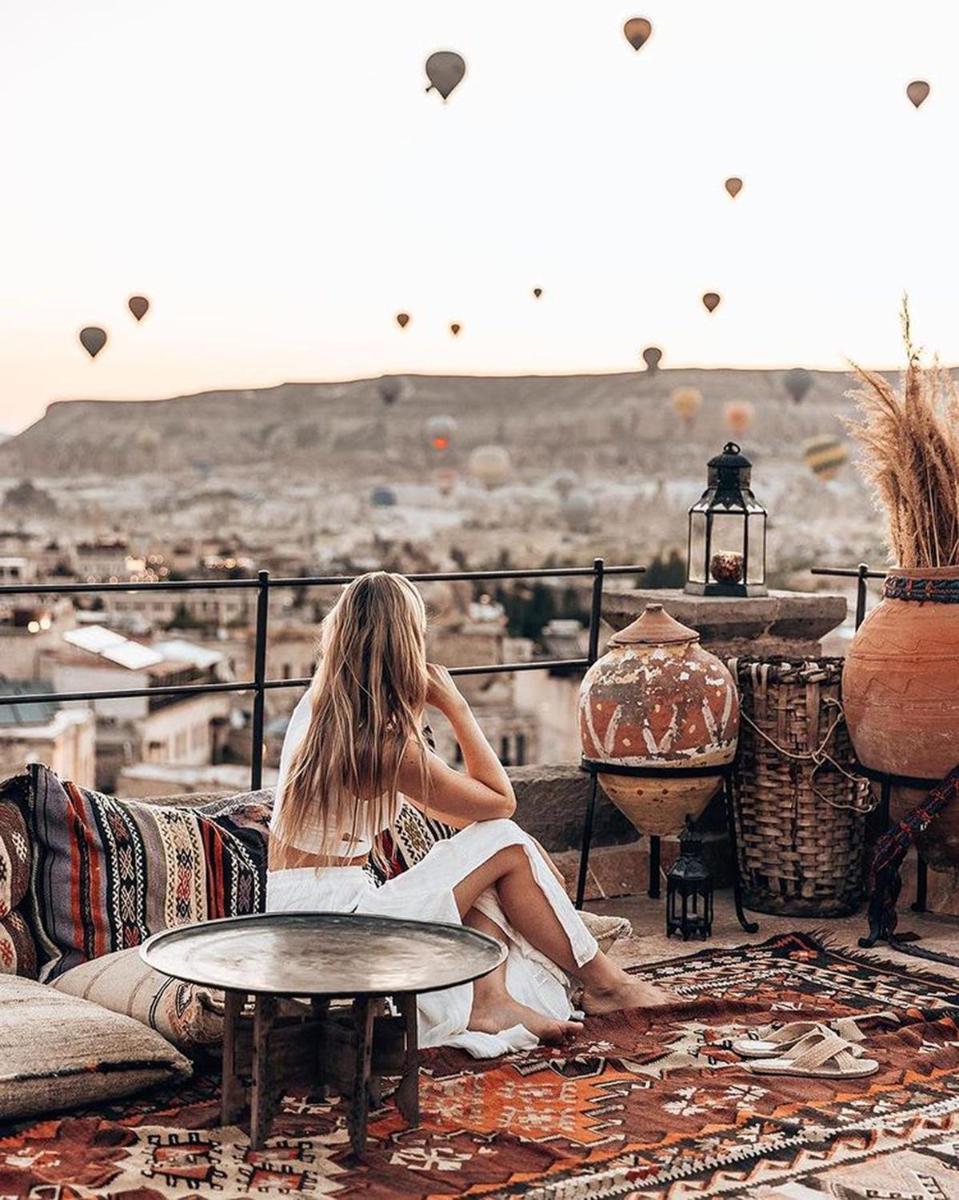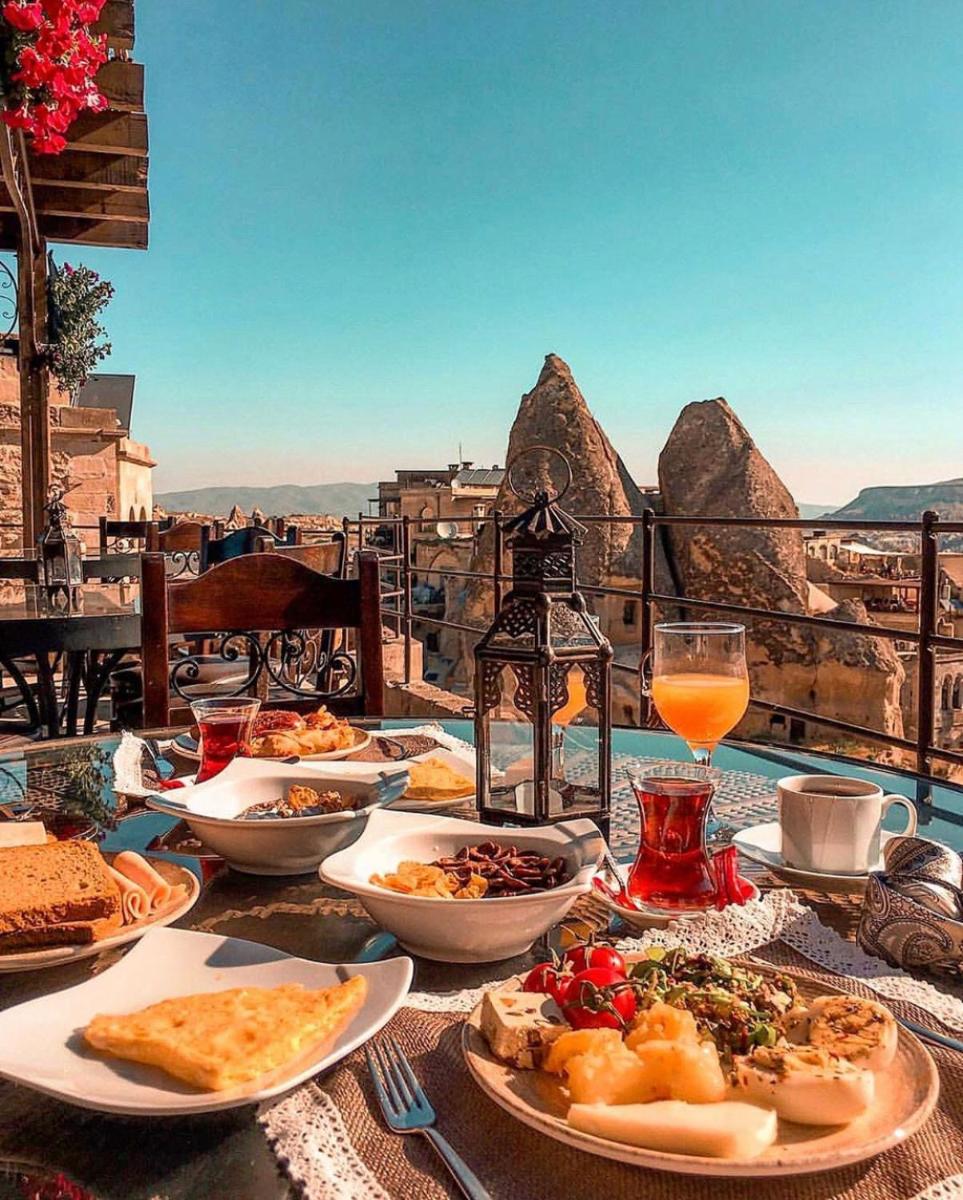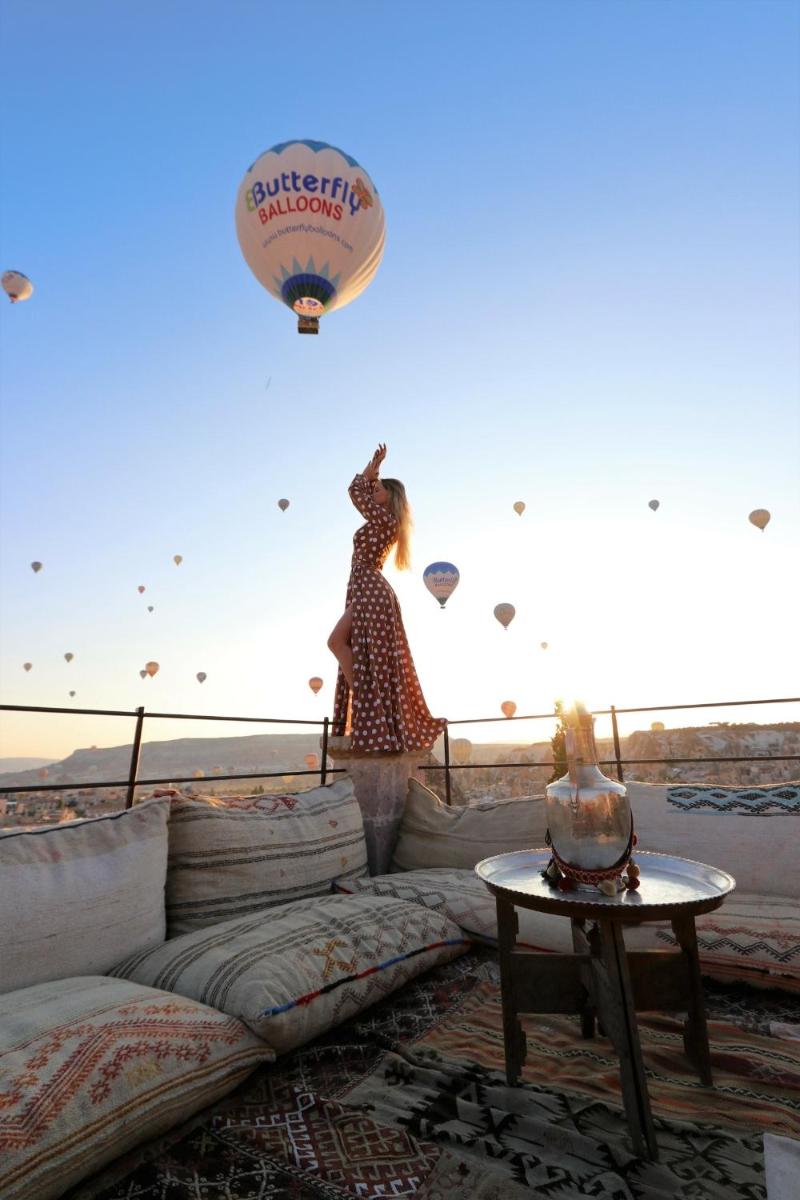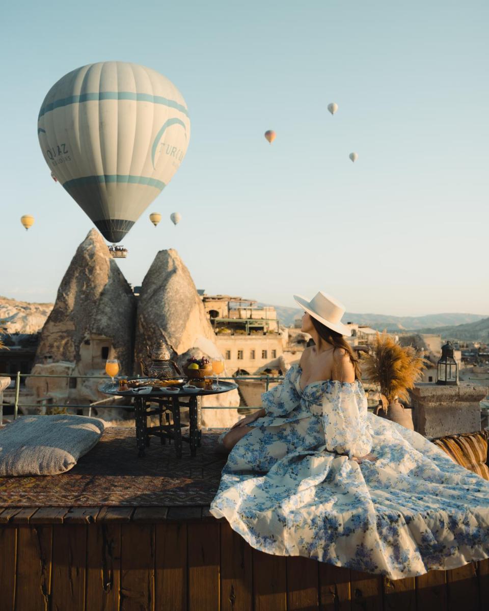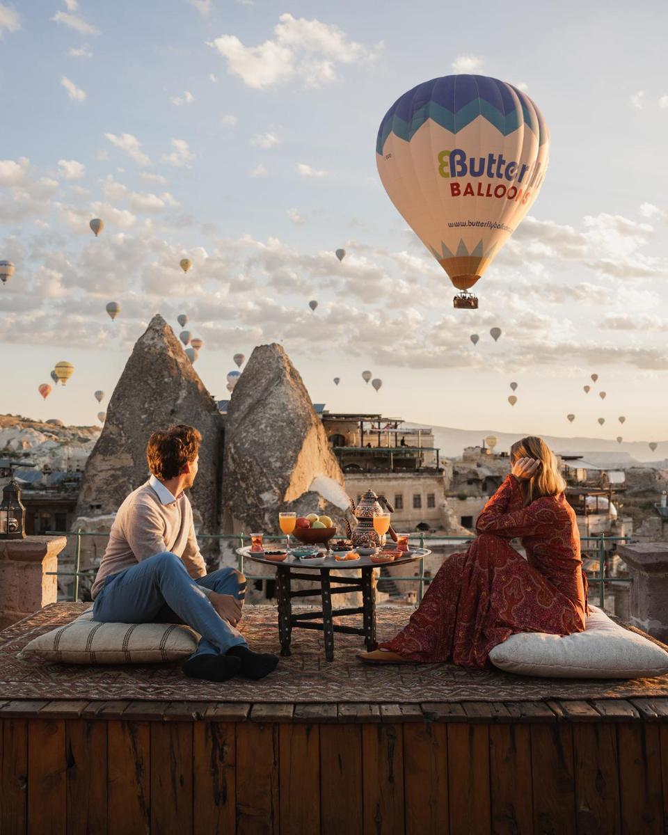 La terrazza del Sultan è il luogo che ha reso l'hotel famoso in tutto il mondo. Ogni mattina, gli ospiti si riuniscono per assistere all'ascesa silenziosa delle mongolfiere, spesso accompagnati da un ricco e vario tavolo da colazione allestito all'aperto, un'esperienza visiva e culinaria senza pari.