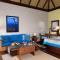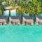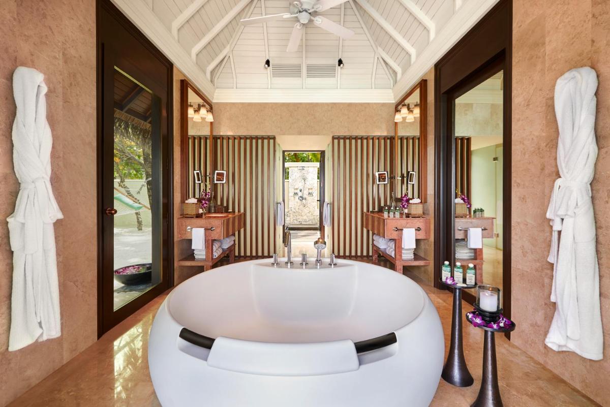 L'hotel presenta un'esclusiva collezione di ville e suite, in gran parte costruite su palafitte, con tetti in paglia di palma e interni elegantemente rifiniti con legni e marmi. Ogni alloggio vanta una terrazza privata, spesso con piscina, e un accesso diretto alla laguna. Il lusso è elevato dal servizio di maggiordomo dedicato 24 ore su 24 per ogni villa.