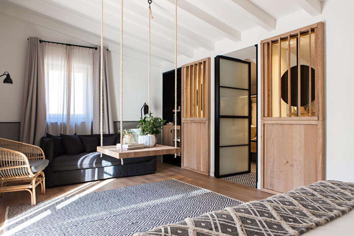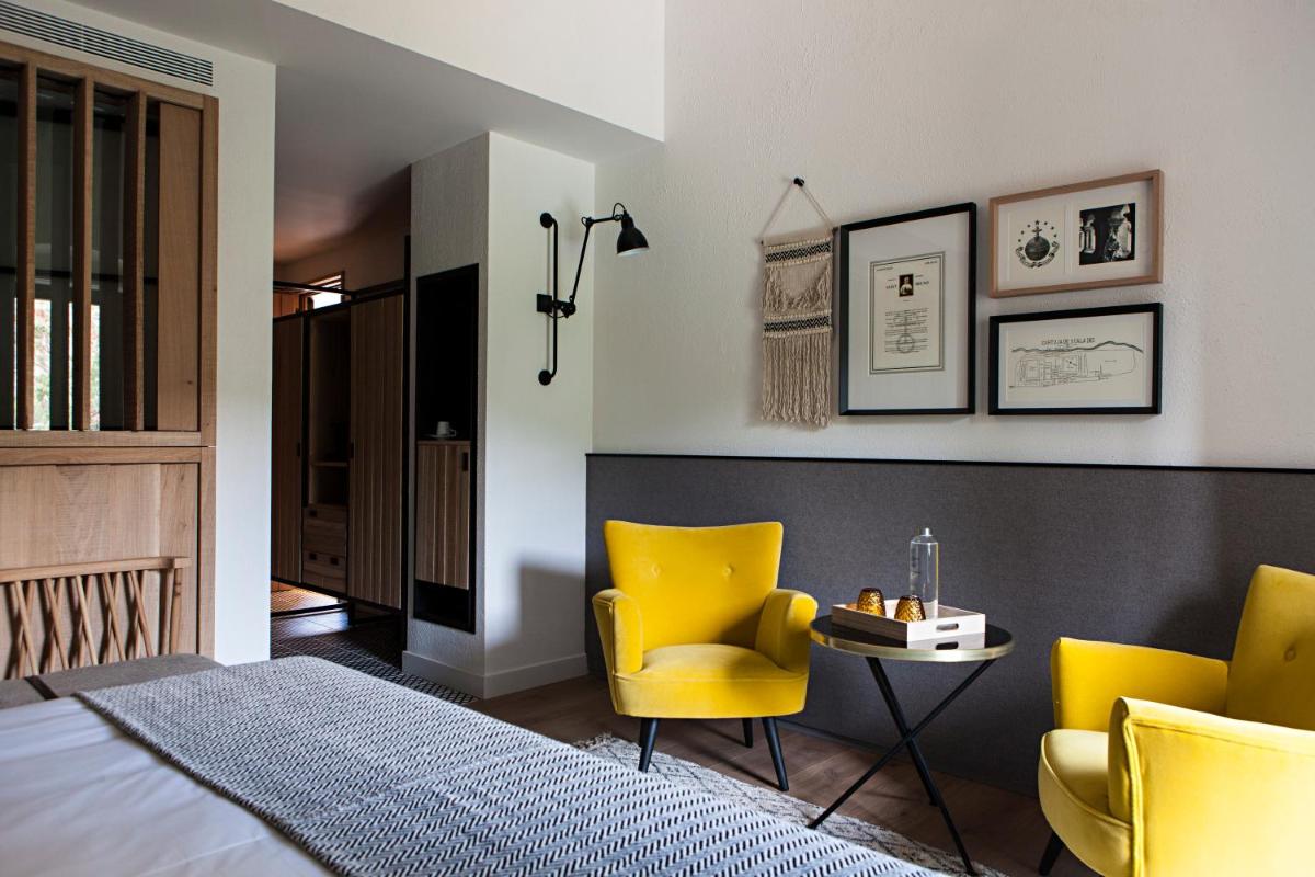 Le 26 camere e suite sono decorate con eleganza rustica e materiali naturali, come pietra e legno. Offrono un'atmosfera di calma con design minimalista e sofisticato. Molte vantano terrazze private con vista mozzafiato sui vigneti e sulla catena montuosa del Montsant, tipica della zona.