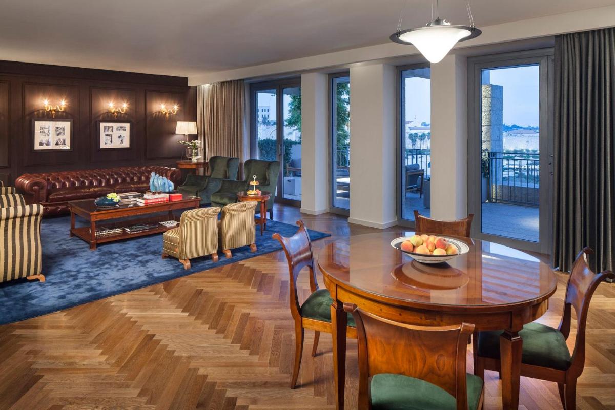 L'hotel vanta camere e suite eccezionalmente spaziose, molte delle quali dotate di ampi balconi privati con vista diretta sulle mura della Città Vecchia o sul David's Citadel. Gli interni sono eleganti e contemporanei, progettati per massimizzare il comfort e l'esperienza visiva, rendendolo un soggiorno indimenticabile nel cuore della storia.