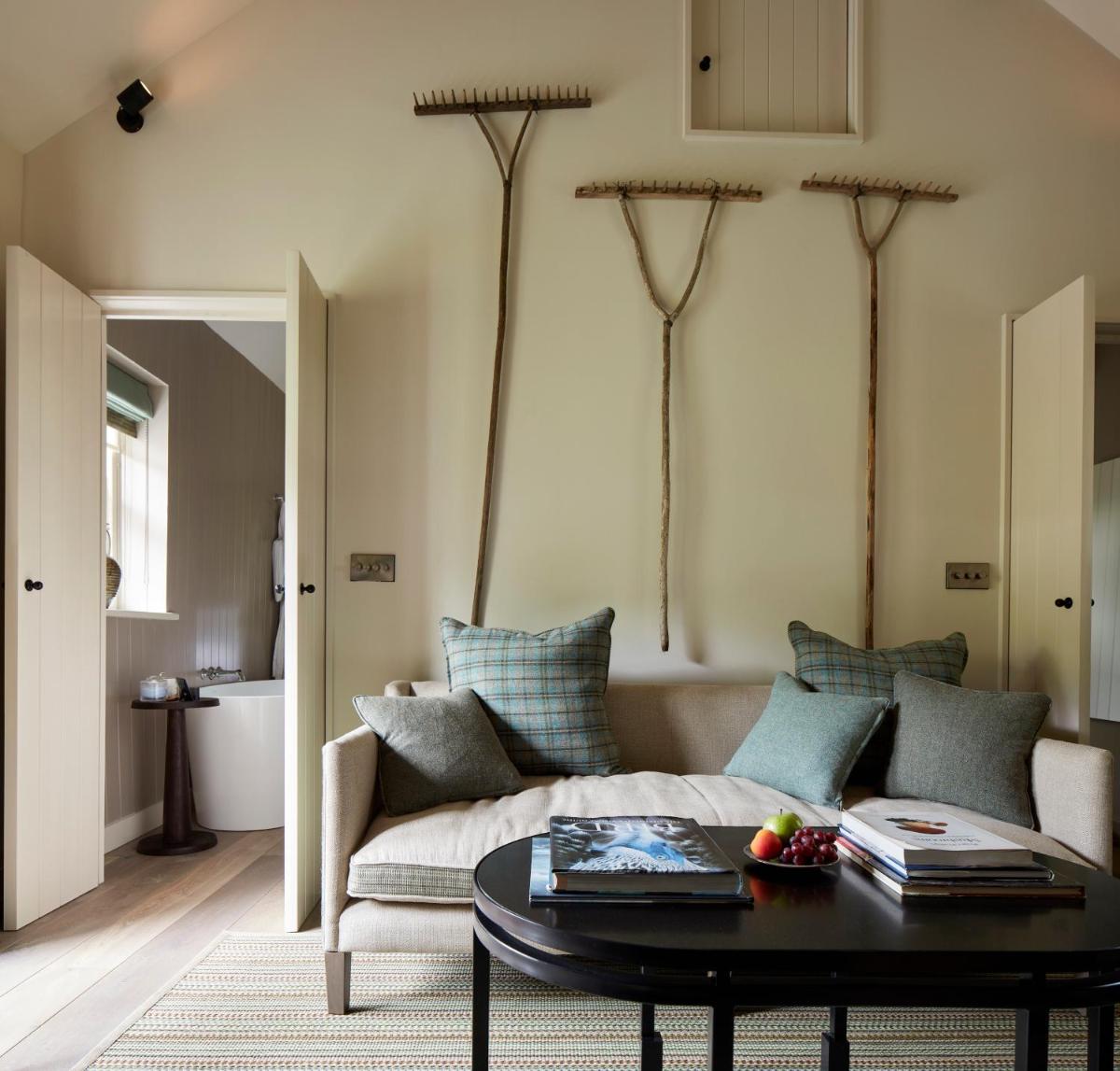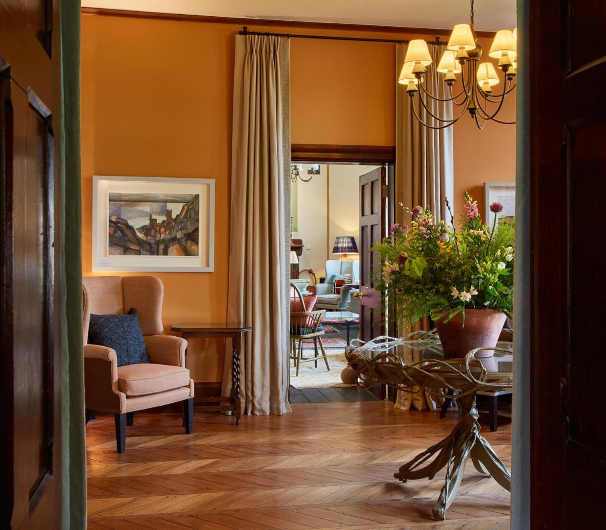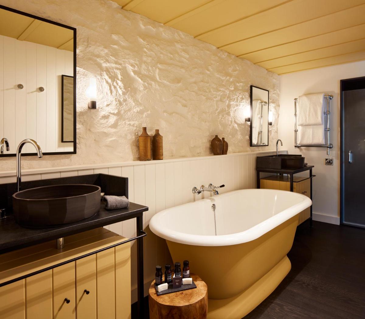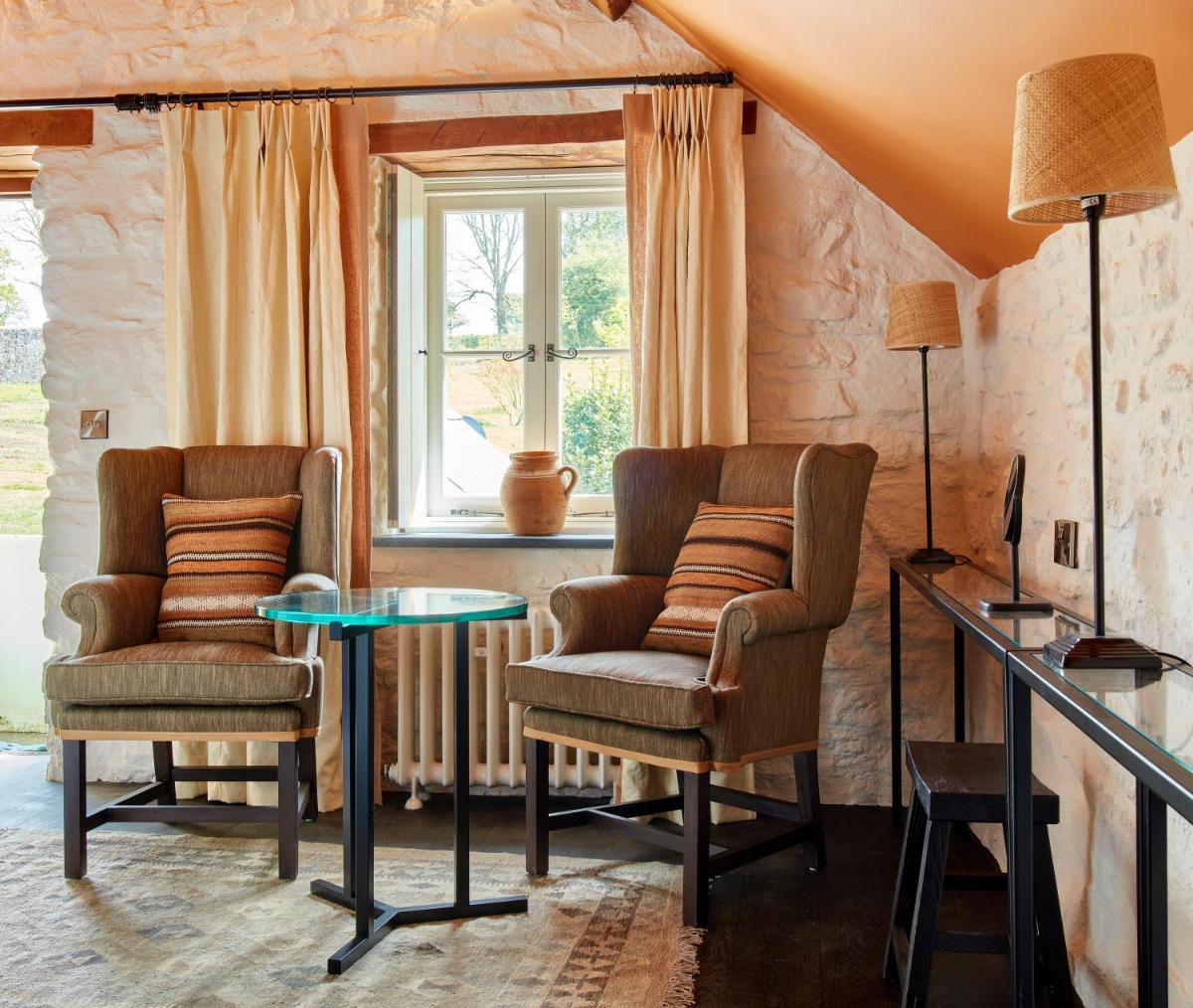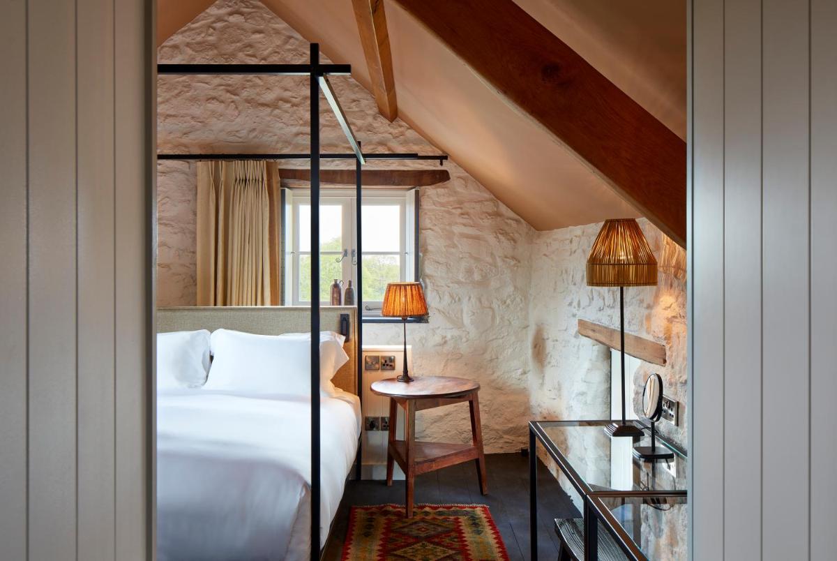 Le camere sono distribuite tra la casa principale e cottage indipendenti, ciascuna progettata individualmente con una miscela di arredamento d'epoca e moderno. Molte offrono vasche da bagno in ghisa e camini, creando un ambiente accogliente di lusso discreto che celebra il paesaggio gallese.