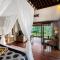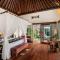 L'alloggio consiste in lussuose suite e ville private, molte delle quali dotate di una piscina privata a sfioro e un balcone con vista ininterrotta sulla valle del fiume e sulla giungla. Il design interno è caldo e sofisticato, utilizzando materiali naturali locali e offrendo il massimo della privacy e del comfort per un soggiorno romantico e rigenerante.