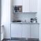 Gli appartamenti variano da monolocali a spaziose suite con più camere da letto, tutti dotati di cucine completamente attrezzate e zone giorno separate. Il design è caratterizzato da linee pulite, arredi di alta qualità e l'esposizione di opere fotografiche originali, creando un ambiente moderno e stimolante che favorisce il relax e l'autonomia.