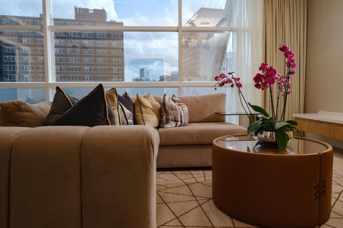 The Lowry Hotel Manchester è un hotel di lusso a 5 stelle e una vera e propria icona architettonica, noto per la sua spettacolare facciata in vetro che si affaccia sul fiume Irwell. Situato nel cuore del quartiere di Salford, vicino a Spinningfields, offre un'esperienza di lusso contemporaneo, celebre per il suo design moderno e il servizio impeccabile.