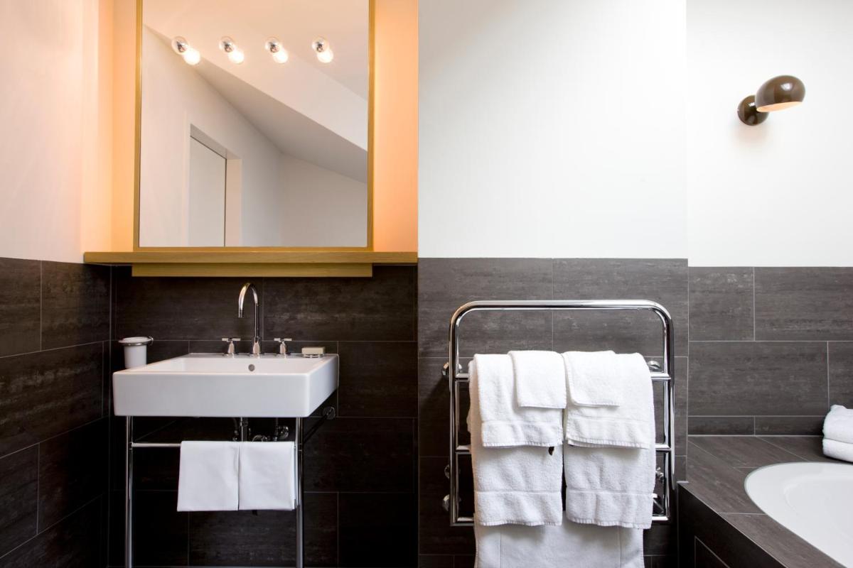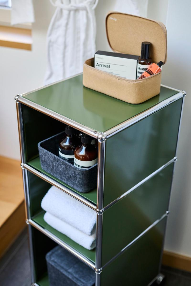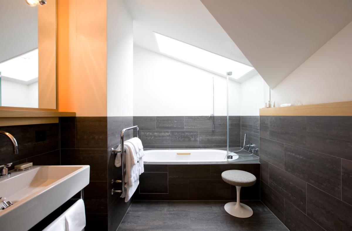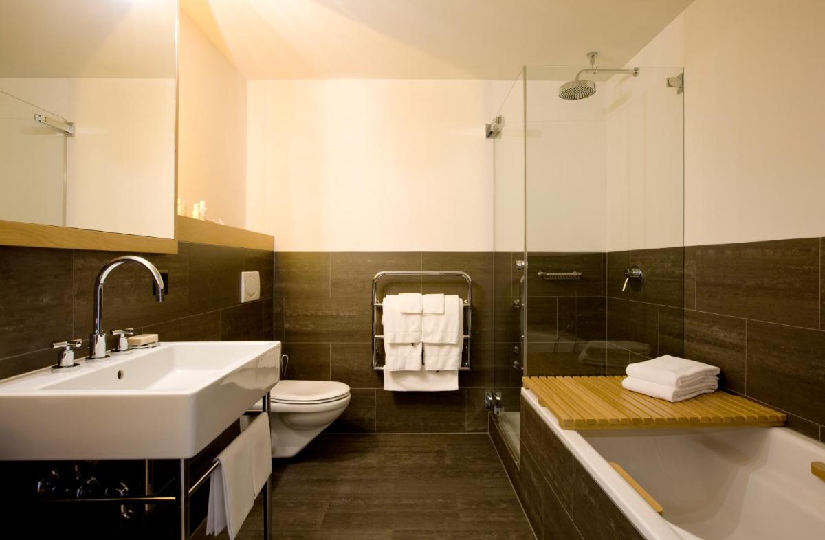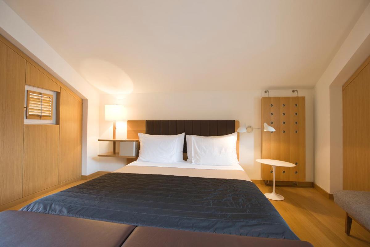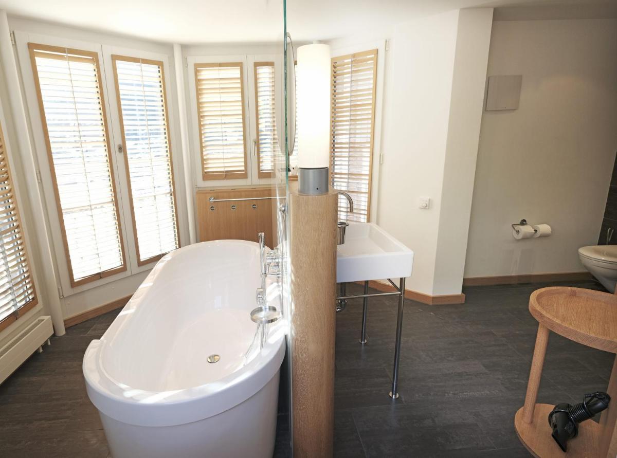 Il design interno è un capolavoro di minimalismo e comfort, caratterizzato dall'uso di materiali naturali come pietra, legno e vetro. Le 30 camere e suite sono concepite come eleganti rifugi, con ampie finestre e balconi che incorniciano il paesaggio alpino. Lo stile è ispirato al concetto di 'lodge' americano, ma con una sensibilità e una qualità artigianale svizzera.