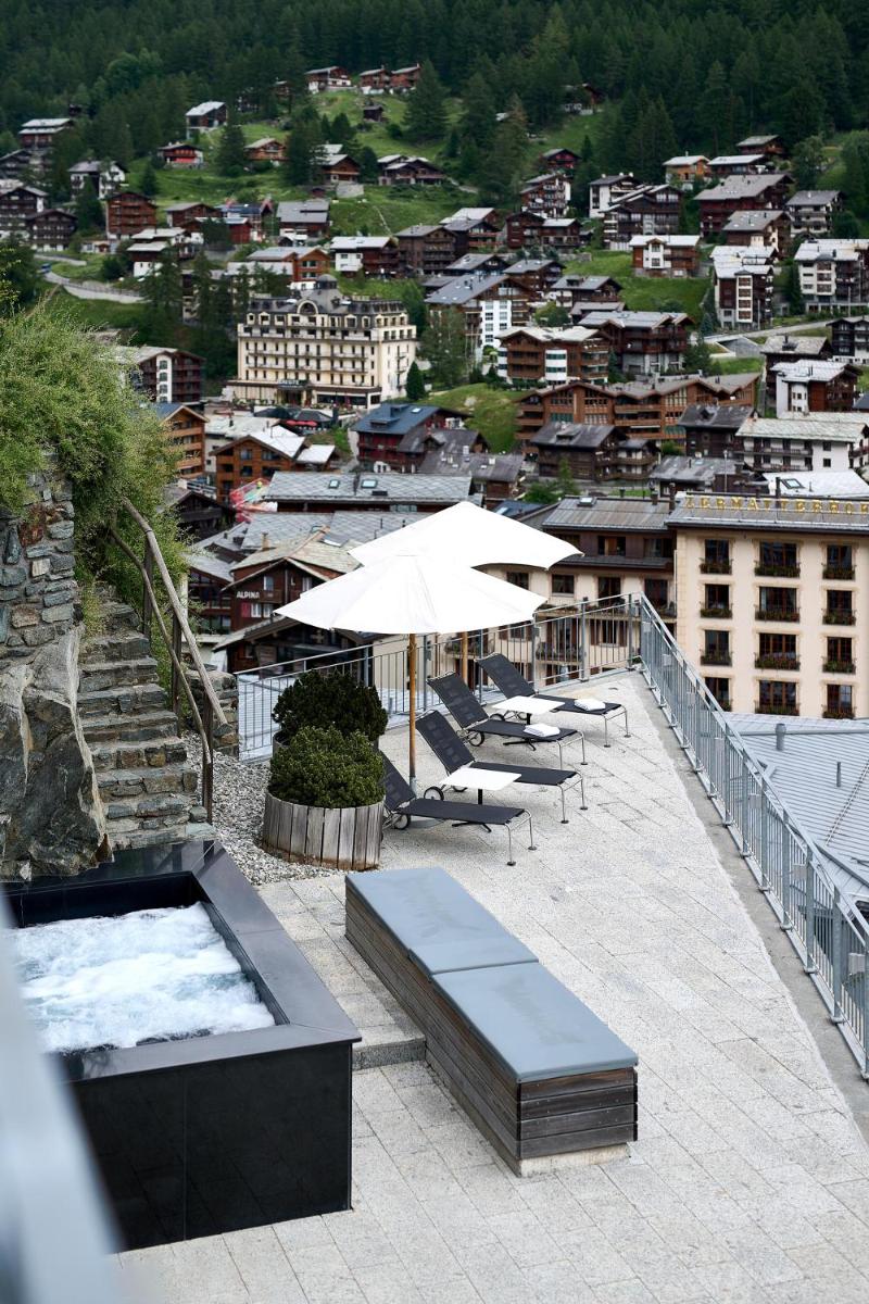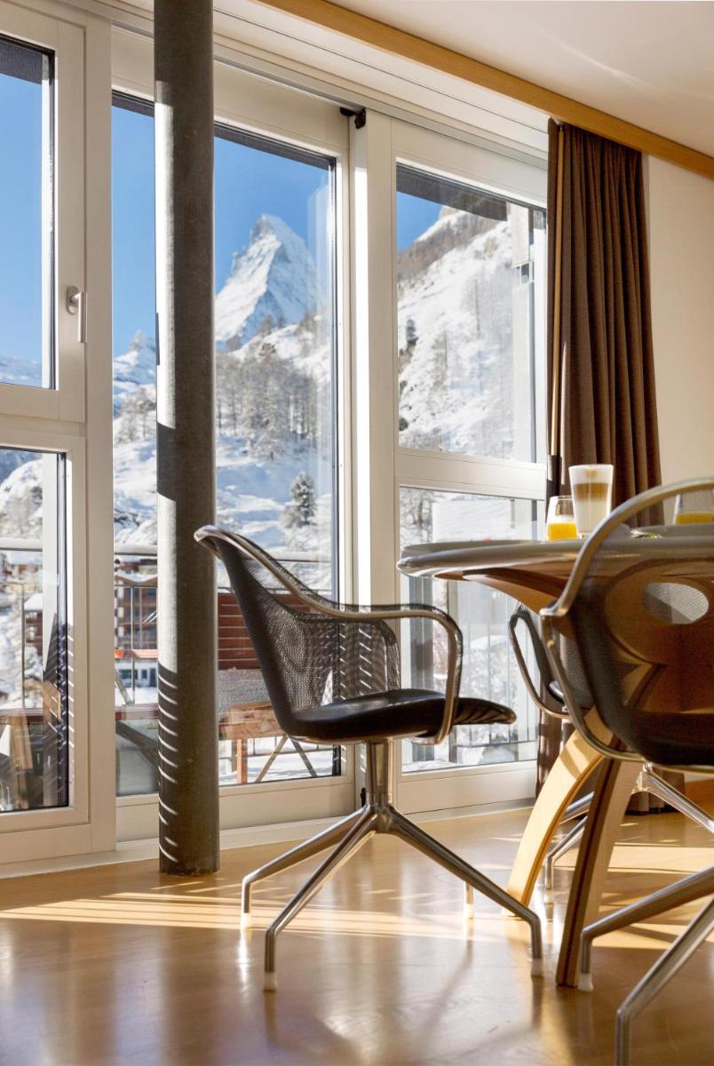 La posizione elevata e il design dell'hotel massimizzano la vista sul Cervino, che diventa l'elemento centrale di molte camere, del lounge e della vasca idromassaggio esterna. Godere del tramonto o dell'alba sul Cervino da The Omnia è un'esperienza di lusso contemplativo unica e indimenticabile, simbolo stesso del fascino di Zermatt.