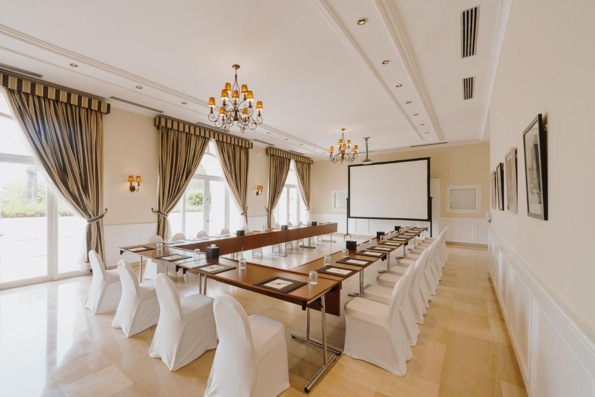 Il design del resort è caratterizzato da spazi ampi, soffitti a volta e un'attenzione meticolosa ai dettagli, con influenze che richiamano i palazzi moreschi. Le camere e le suite sono lussuose e dotate di balconi privati con vista sul mare o sui giardini. L'atmosfera generale è di eleganza discreta e tranquillità, enfatizzata dall'uso di materiali naturali.