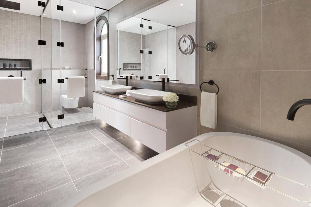 Caratterizzata da arredi eleganti, questa villa climatizzata dispone di spaziosa terrazza con vista panoramica sui lussureggianti giardini o sulla Grande Moschea Sheikh Zayed. Offre un soggiorno e una camera da letto separati. L’angolo cottura include un microonde. I servizi includono minibar, armadio, set da stiro e TV satellitare. Il bagno è dotato di vasca, doccia e set di cortesia.
