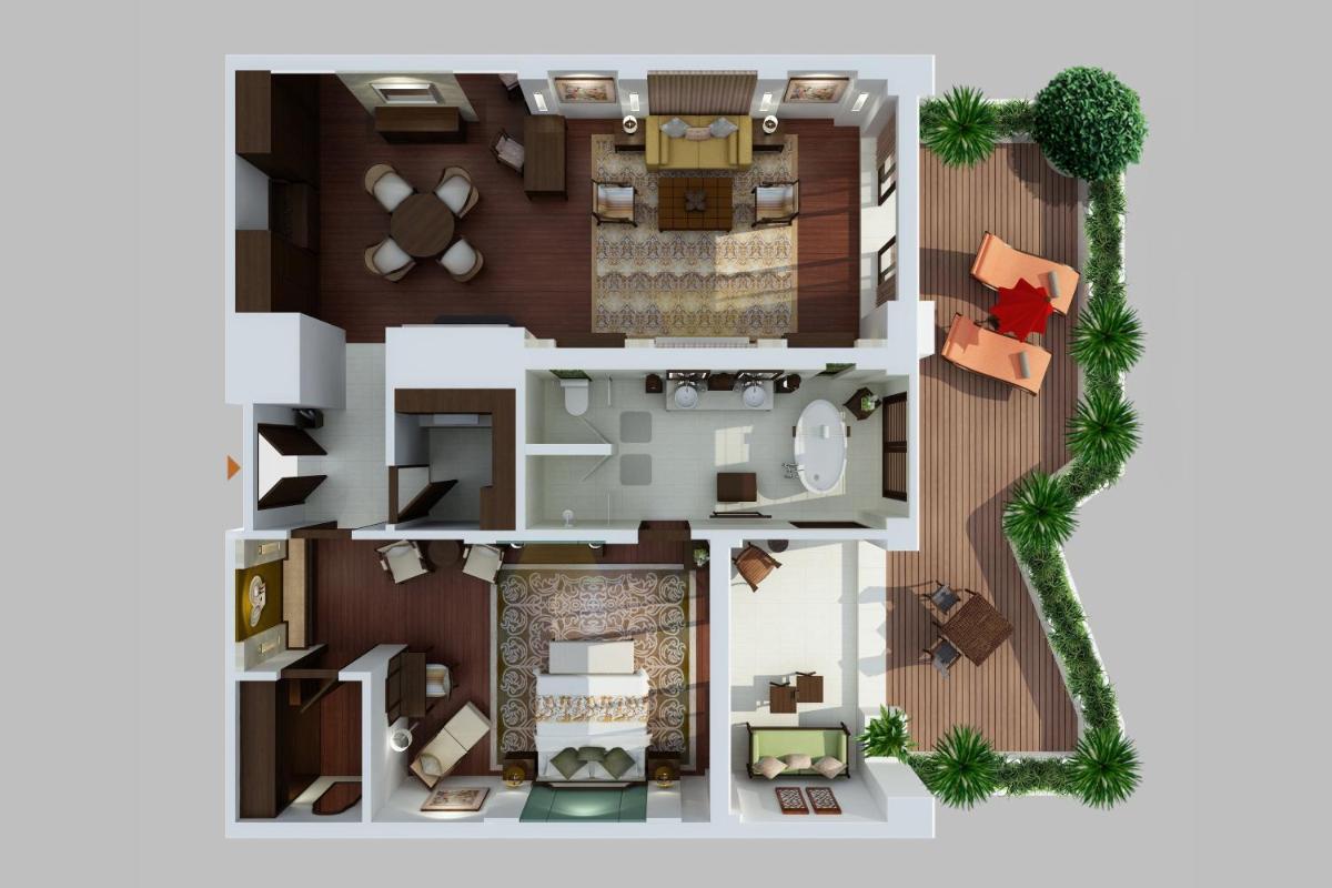 Questa suite include una cabina armadio, un bagno in marmo con doppio lavabo, ampia vasca e doccia separata, e una seconda TV LCD. Troverete anche un ampio spazio esterno dotato di un rigoglioso giardino privato, di una vasca immersione ad acqua fredda con idromassaggio e di un gazebo. Godrete di una vista rilassante e del servizio maggiordomo St. Regis. Il soggiorno include inoltre una sontuosa colazione giornaliera che comprende frittata di aragosta, foie gras, bistecca e uova.