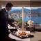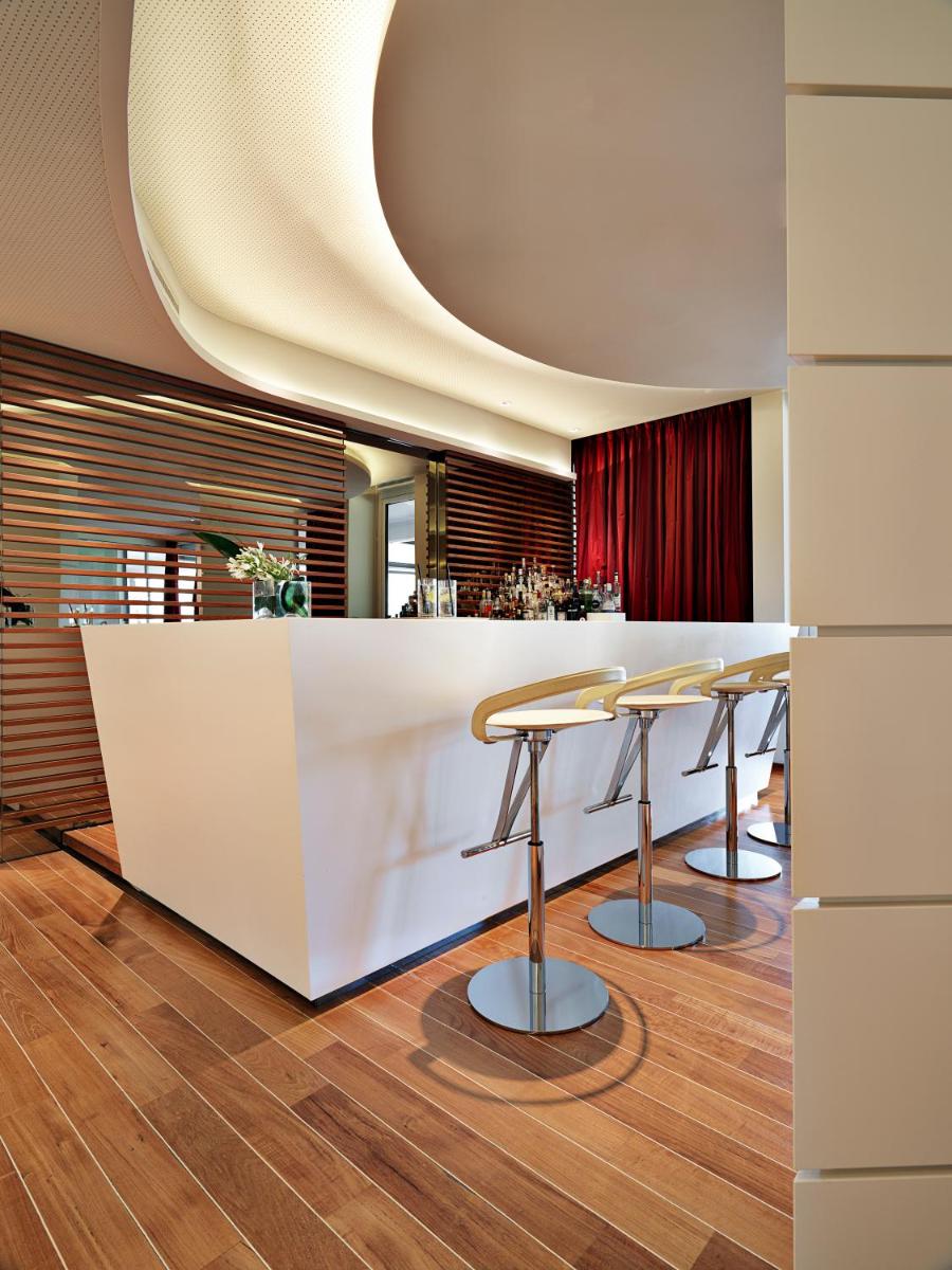 Il ristorante dell'hotel offre un viaggio culinario attraverso sapori mediterranei e internazionali, con un focus sulla freschezza e l'innovazione. L'ambiente è elegante e raffinato, perfetto per cene romantiche, e la terrazza esterna permette di gustare piatti gourmet ammirando il panorama notturno illuminato del lago.