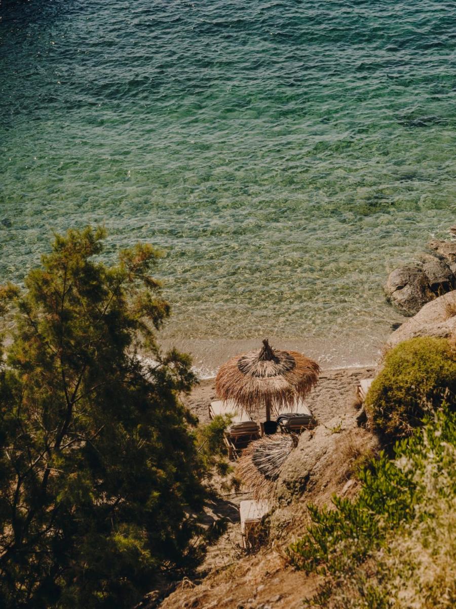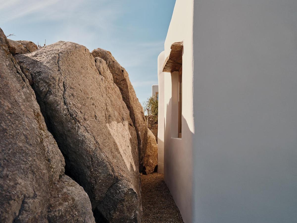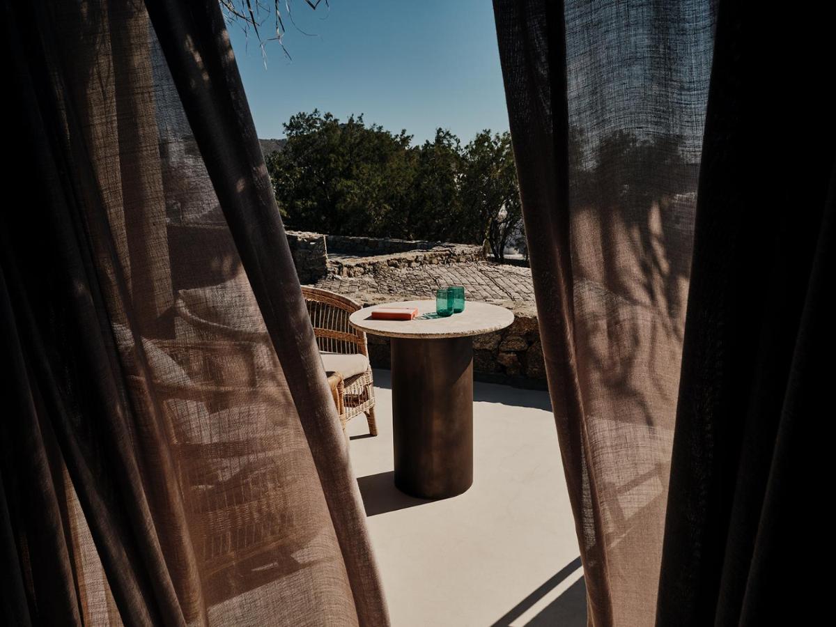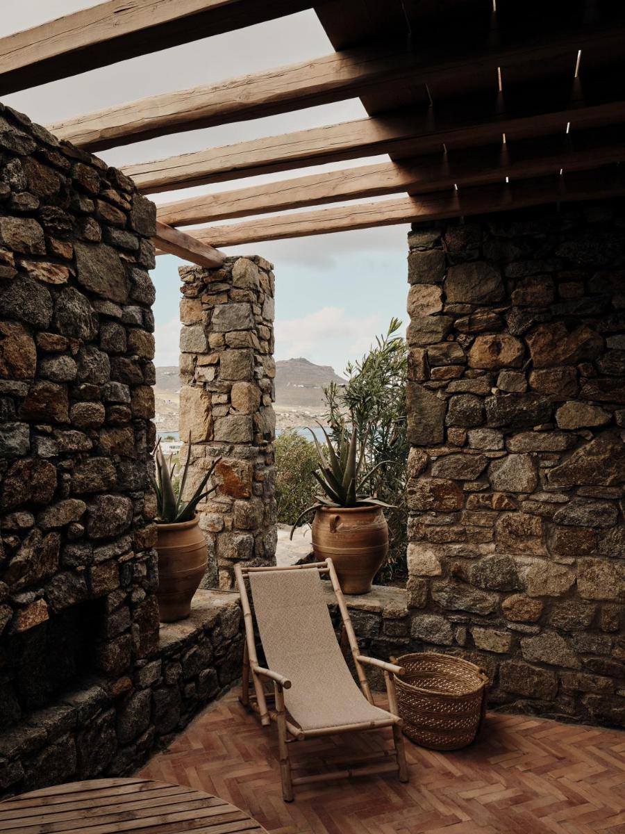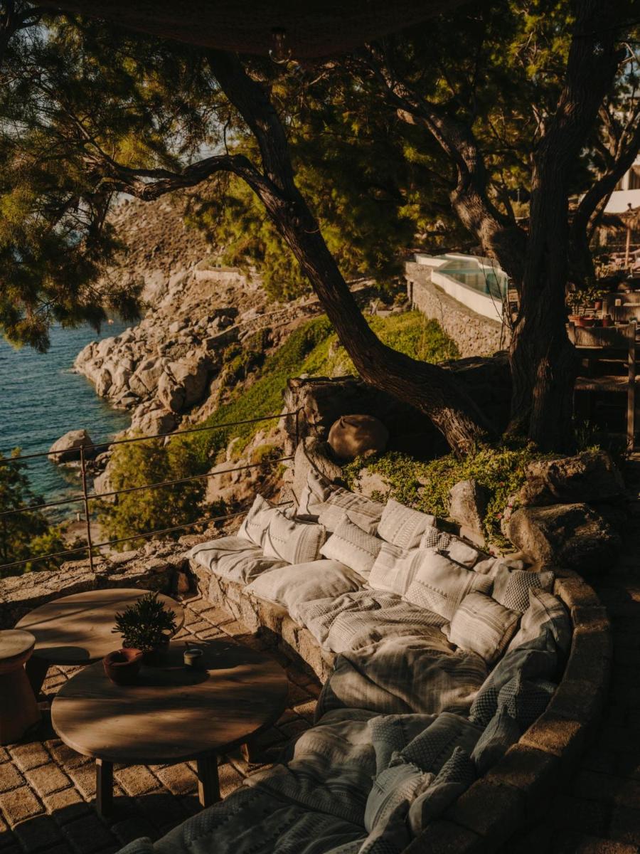 Il design è una celebrazione dell'estetica cicladica con un tocco moderno, caratterizzato da un uso abbondante di pietra a vista, legno naturale e tonalità neutre. Le sue 40 suite e ville sono ricavate in modo da integrarsi perfettamente con la scogliera, offrendo a tutte le sistemazioni una vista drammatica sul Mar Egeo e sulla spiaggia sottostante.