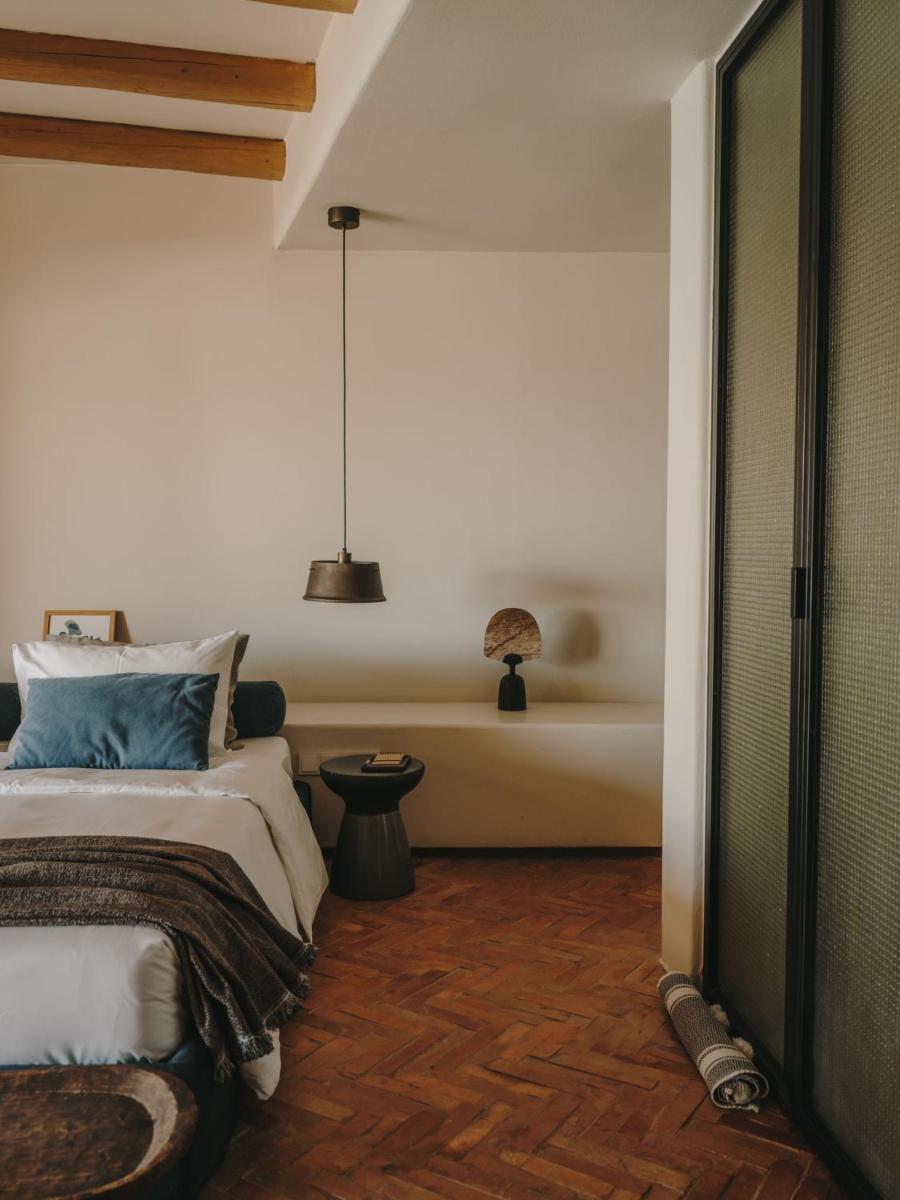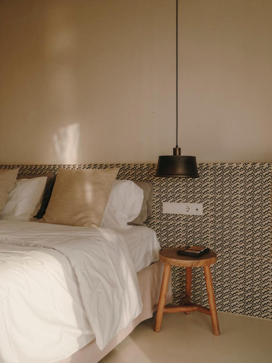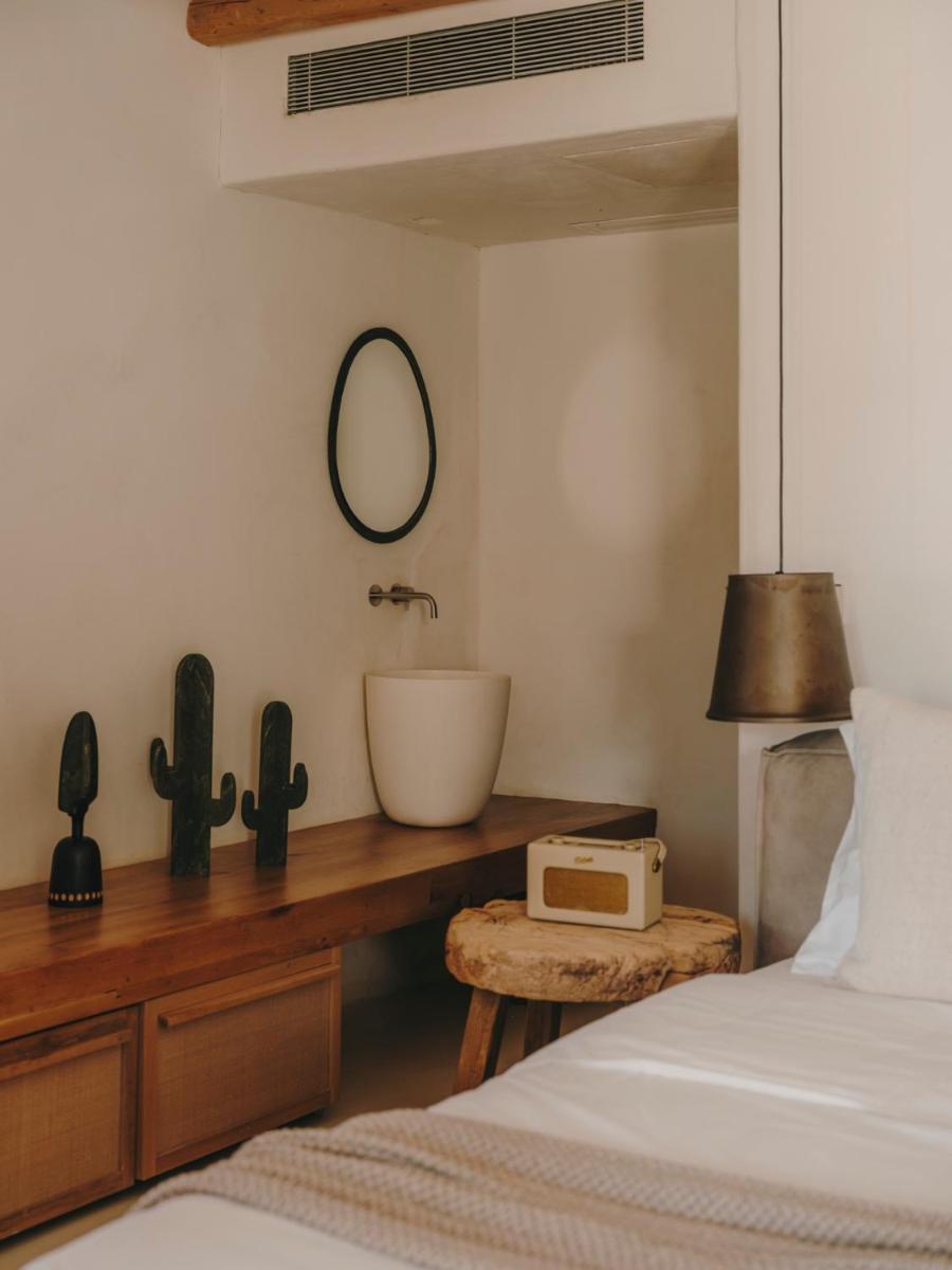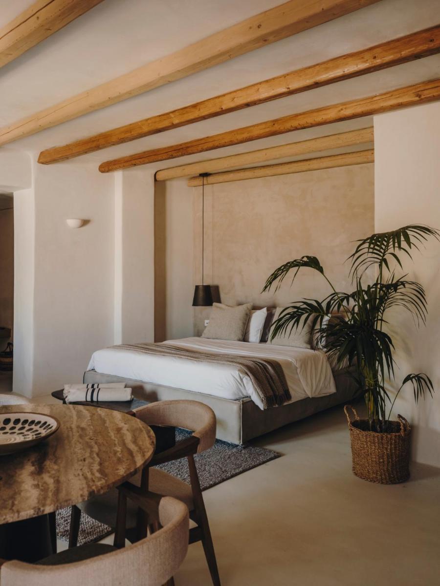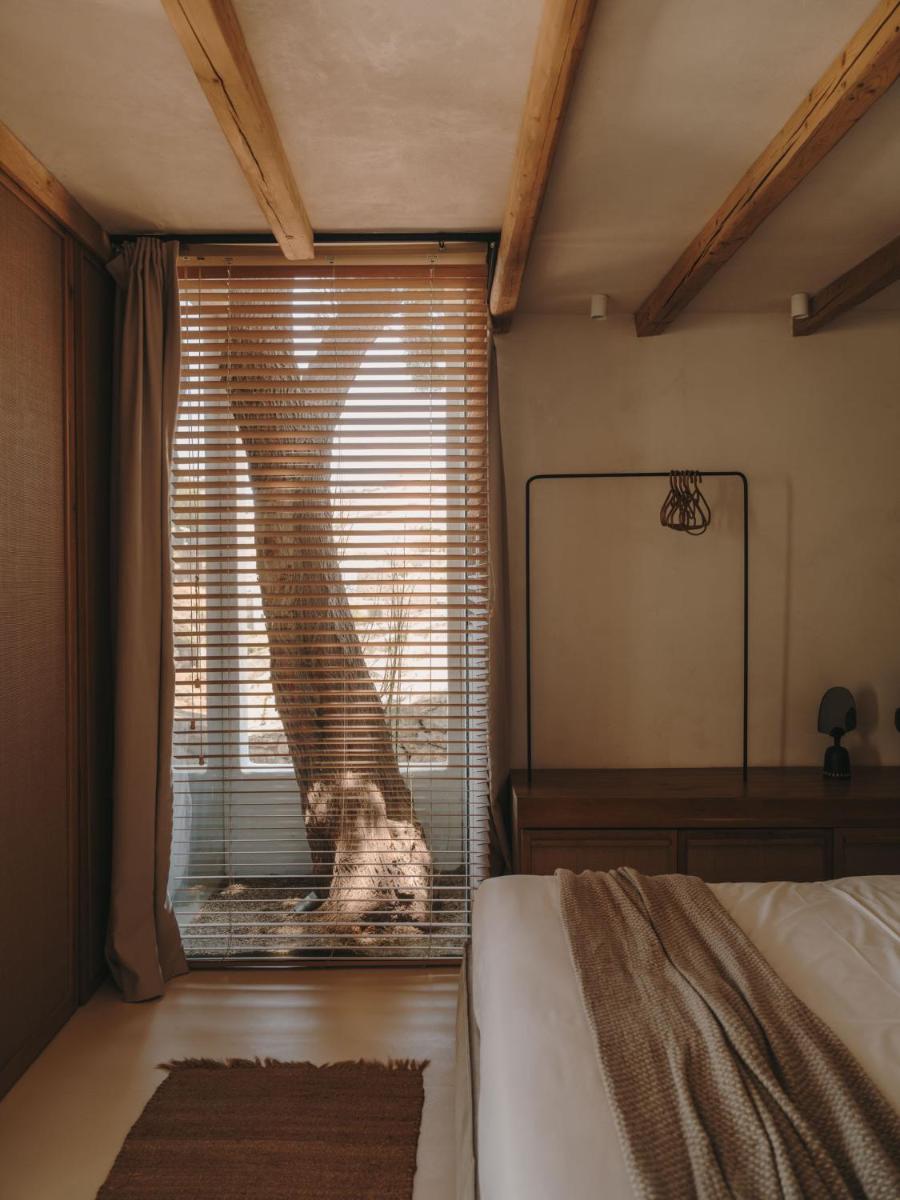 Il design è una celebrazione dell'estetica cicladica con un tocco moderno, caratterizzato da un uso abbondante di pietra a vista, legno naturale e tonalità neutre. Le sue 40 suite e ville sono ricavate in modo da integrarsi perfettamente con la scogliera, offrendo a tutte le sistemazioni una vista drammatica sul Mar Egeo e sulla spiaggia sottostante.