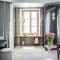 Il design interno è caratterizzato da materiali naturali, colori neutri e un'illuminazione sapiente, creando spazi luminosi e sereni. Il minimalismo sofisticato è la chiave, con arredi su misura e opere d'arte contemporanea che offrono un contrasto elegante con la facciata storica dell'edificio.