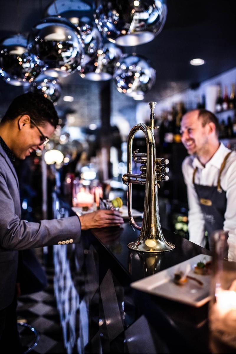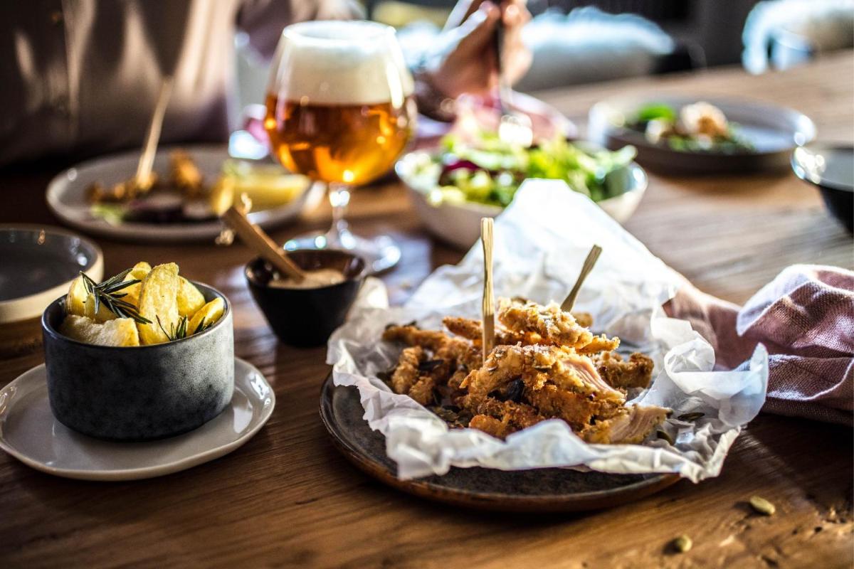 Il ristorante interno propone una cucina gourmet creativa, con un forte legame con la tradizione slovena ma rivisitata in chiave moderna e internazionale, utilizzando prodotti freschi e locali. Il bar è un punto d'incontro alla moda, che completa l'esperienza urbana e sofisticata del resort.