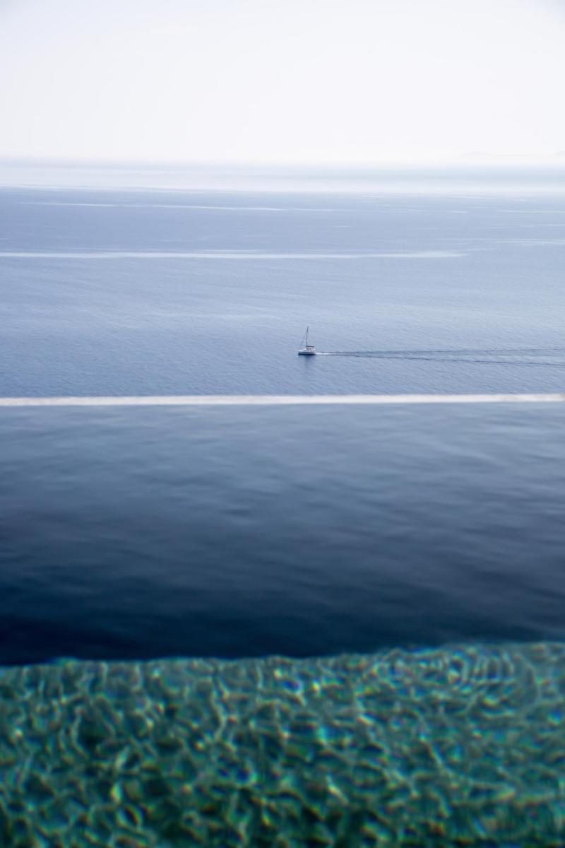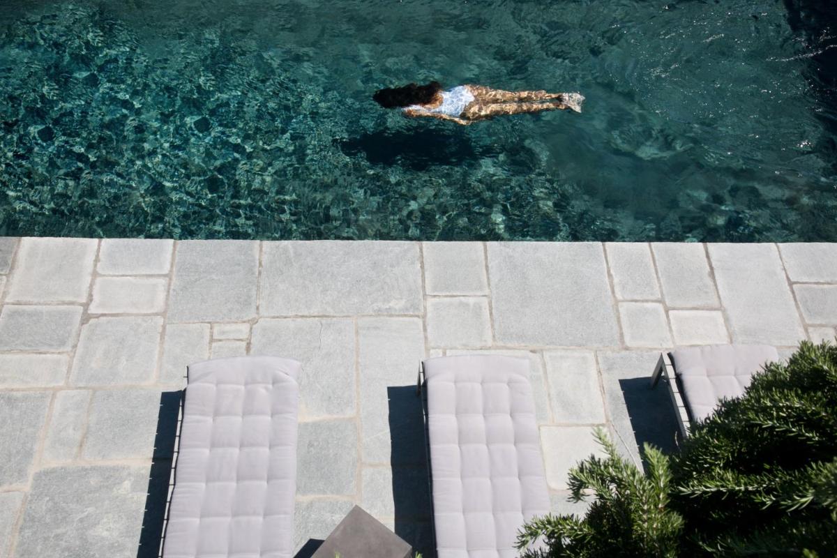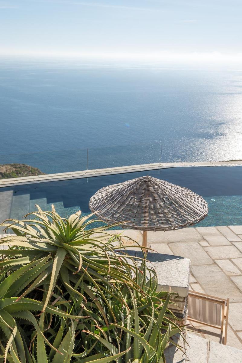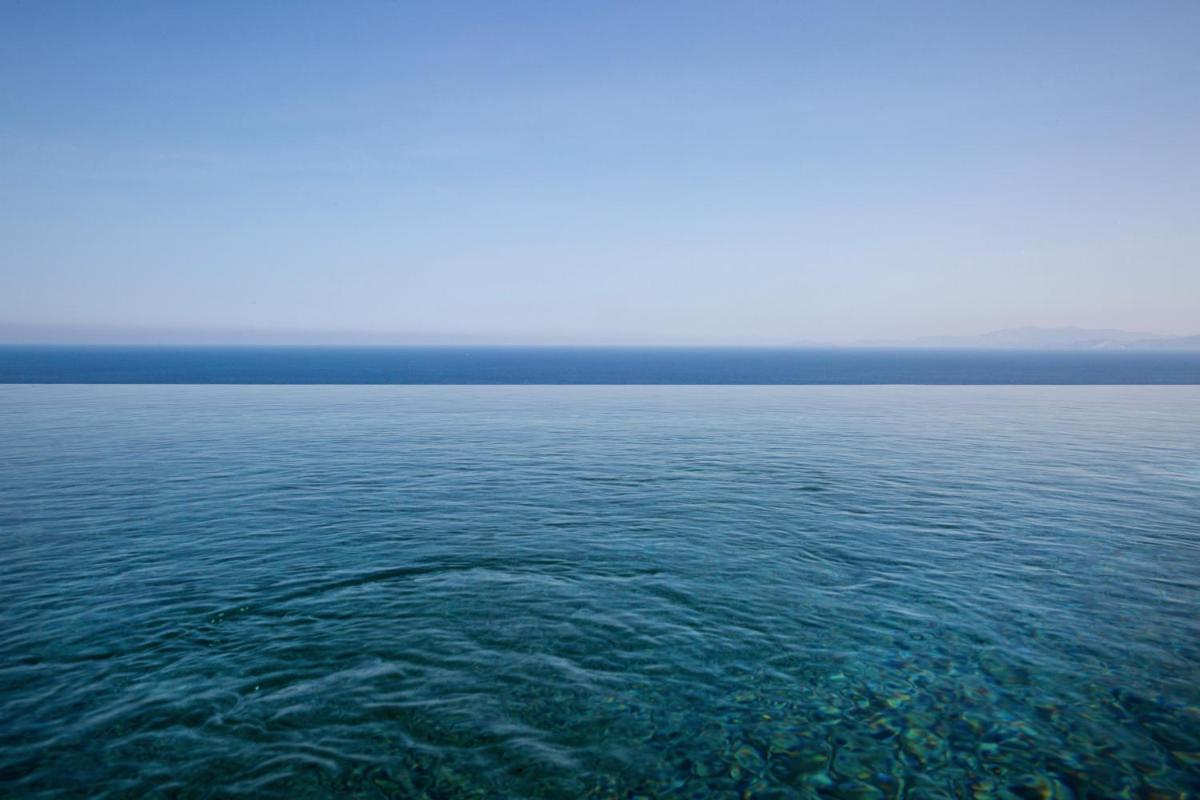 La piscina a sfioro è il punto focale della proprietà, strategicamente posizionata per dare l'illusione di fondersi con l'Egeo. Circondata da lettini confortevoli e ombrelloni, è il luogo ideale per trascorrere ore di relax ininterrotto. L'ambiente è curato per favorire la meditazione e il benessere lontano dal trambusto.