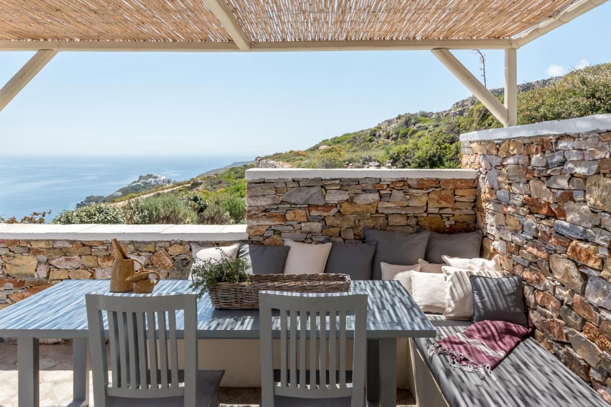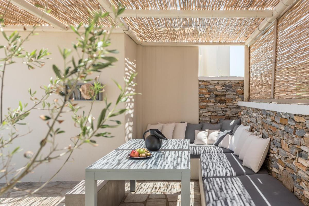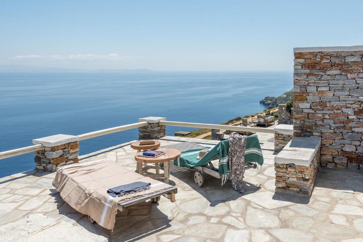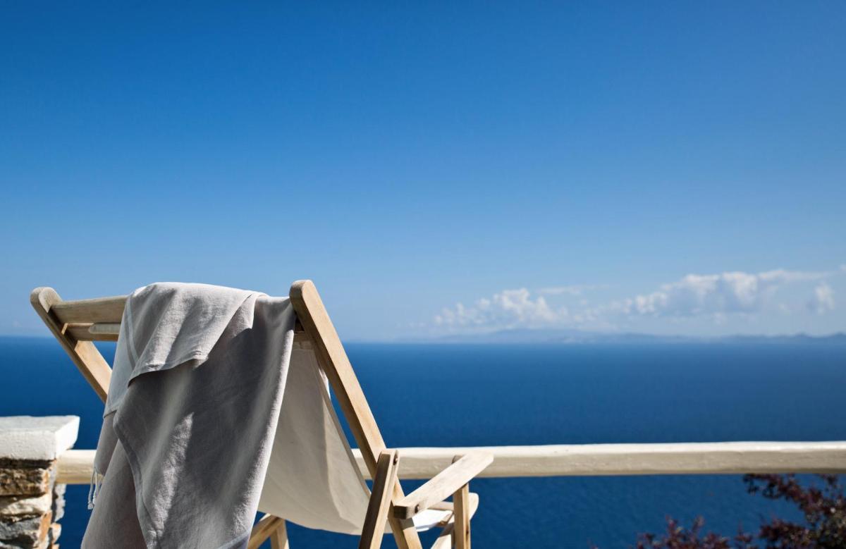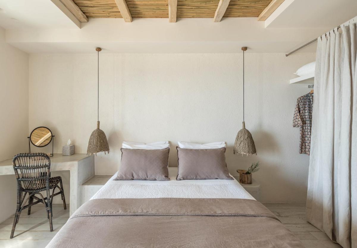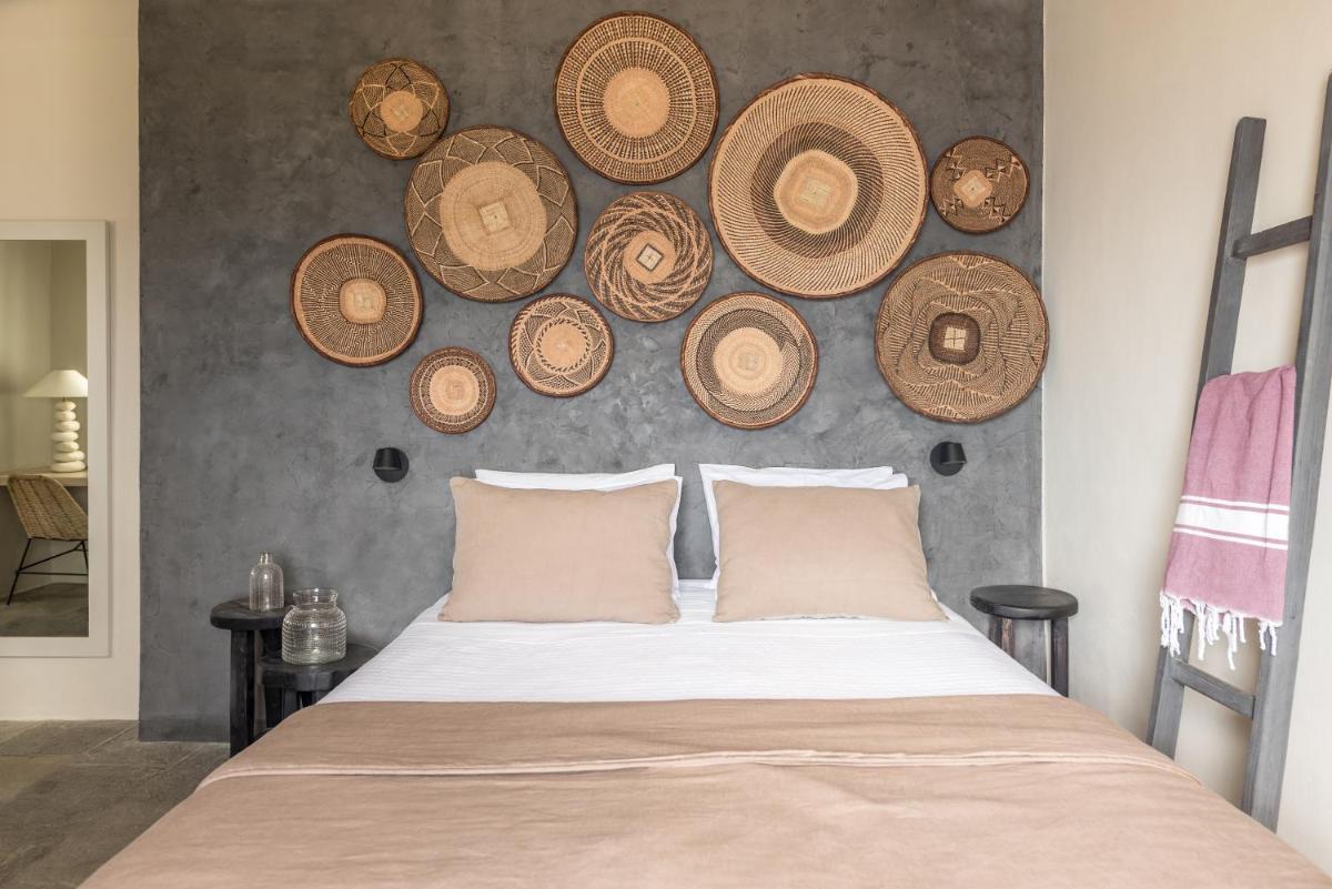 Il design è fedele alla tradizione cicladica, con pareti bianche, pietra locale e arredi eleganti ma essenziali. Le suite e le ville sono progettate per massimizzare la vista, offrendo terrazze private ampie da cui è possibile godere del silenzio e dell'immensità del mare. L'intimità e la privacy sono garantite in ogni alloggio.