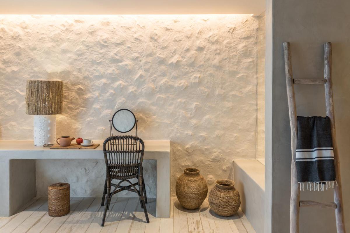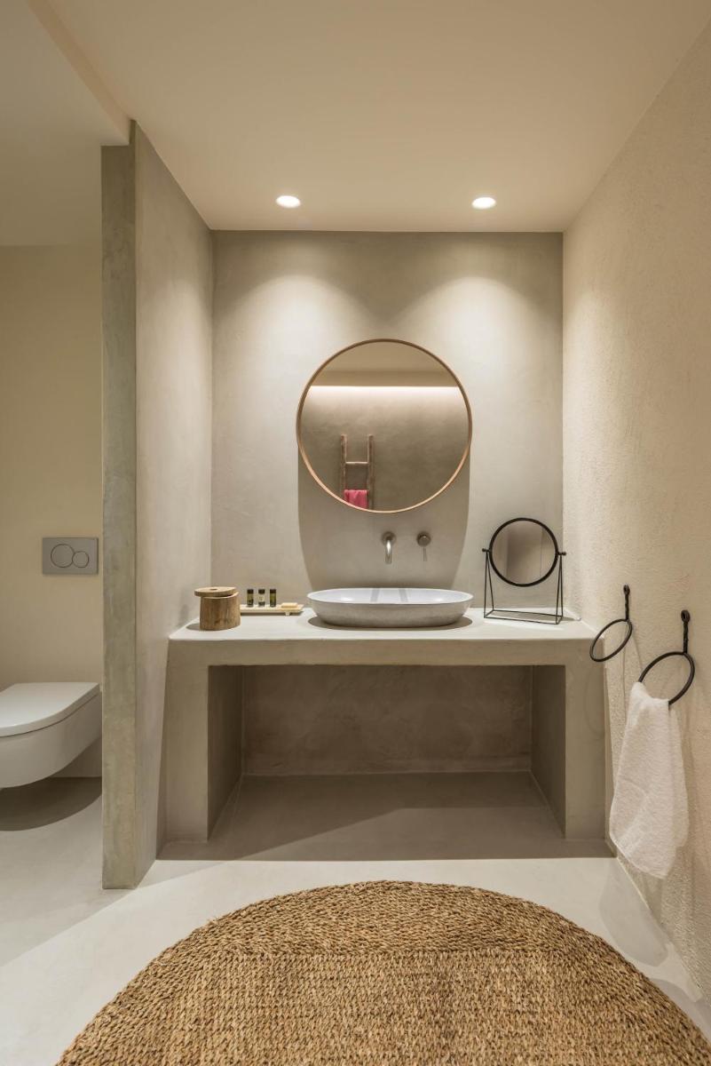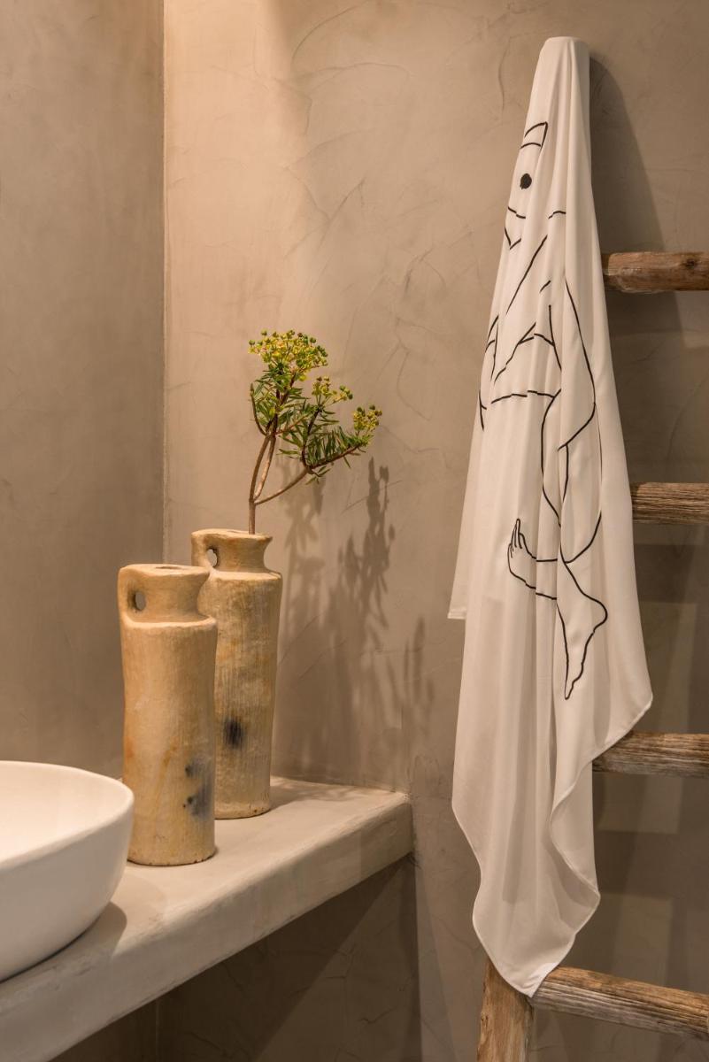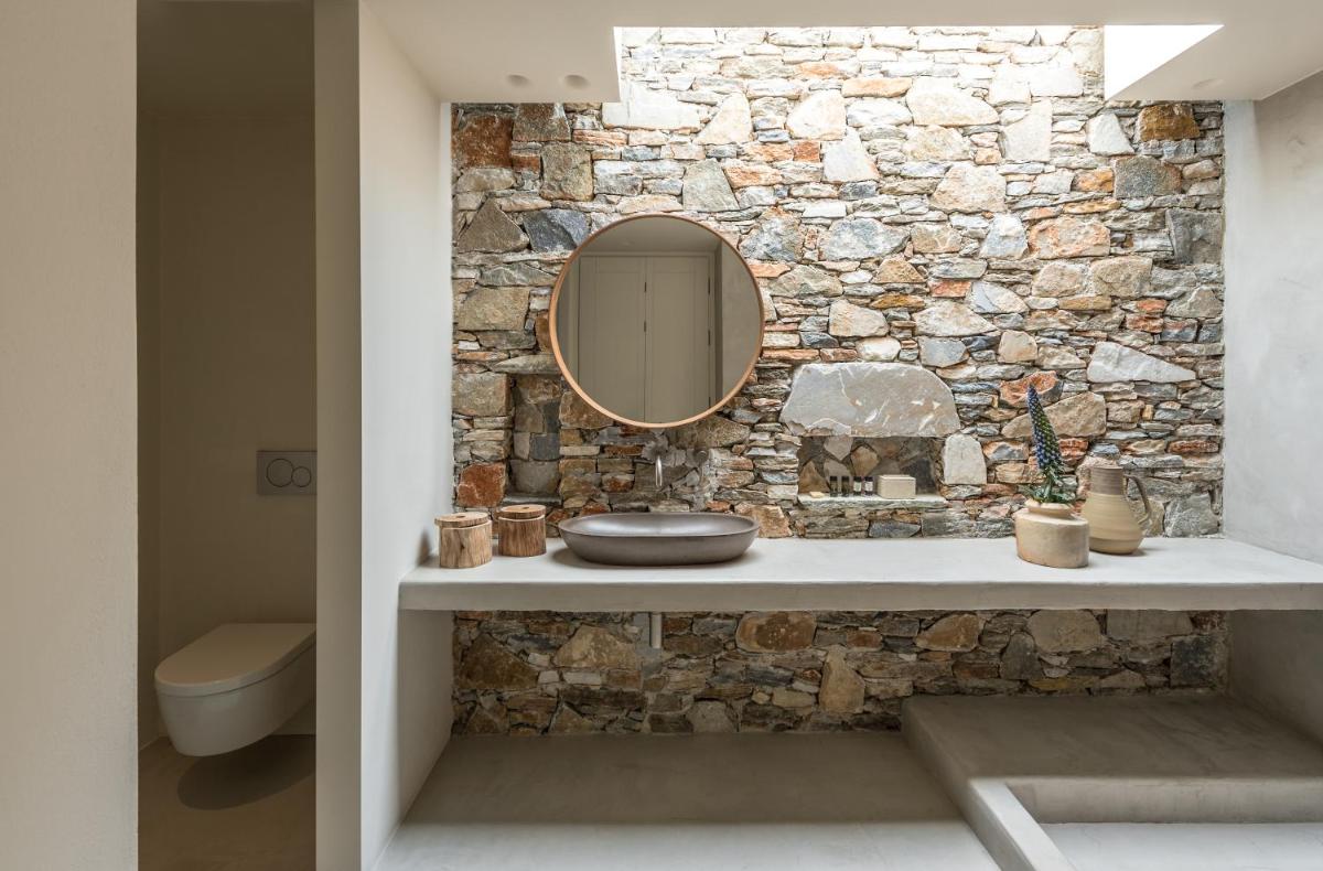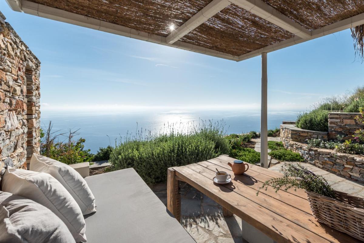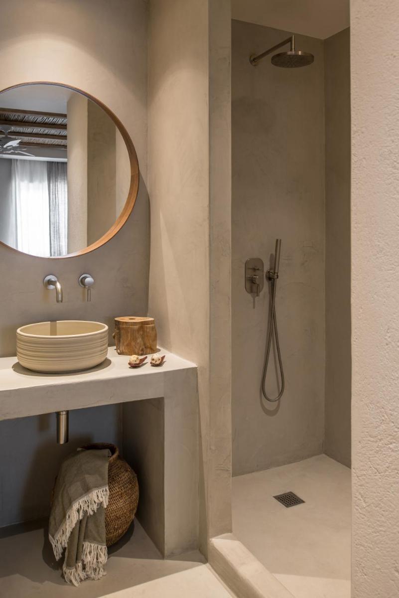 Il design è fedele alla tradizione cicladica, con pareti bianche, pietra locale e arredi eleganti ma essenziali. Le suite e le ville sono progettate per massimizzare la vista, offrendo terrazze private ampie da cui è possibile godere del silenzio e dell'immensità del mare. L'intimità e la privacy sono garantite in ogni alloggio.