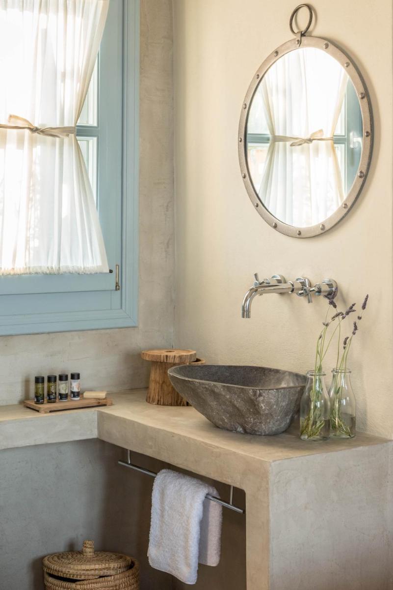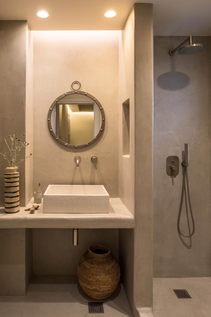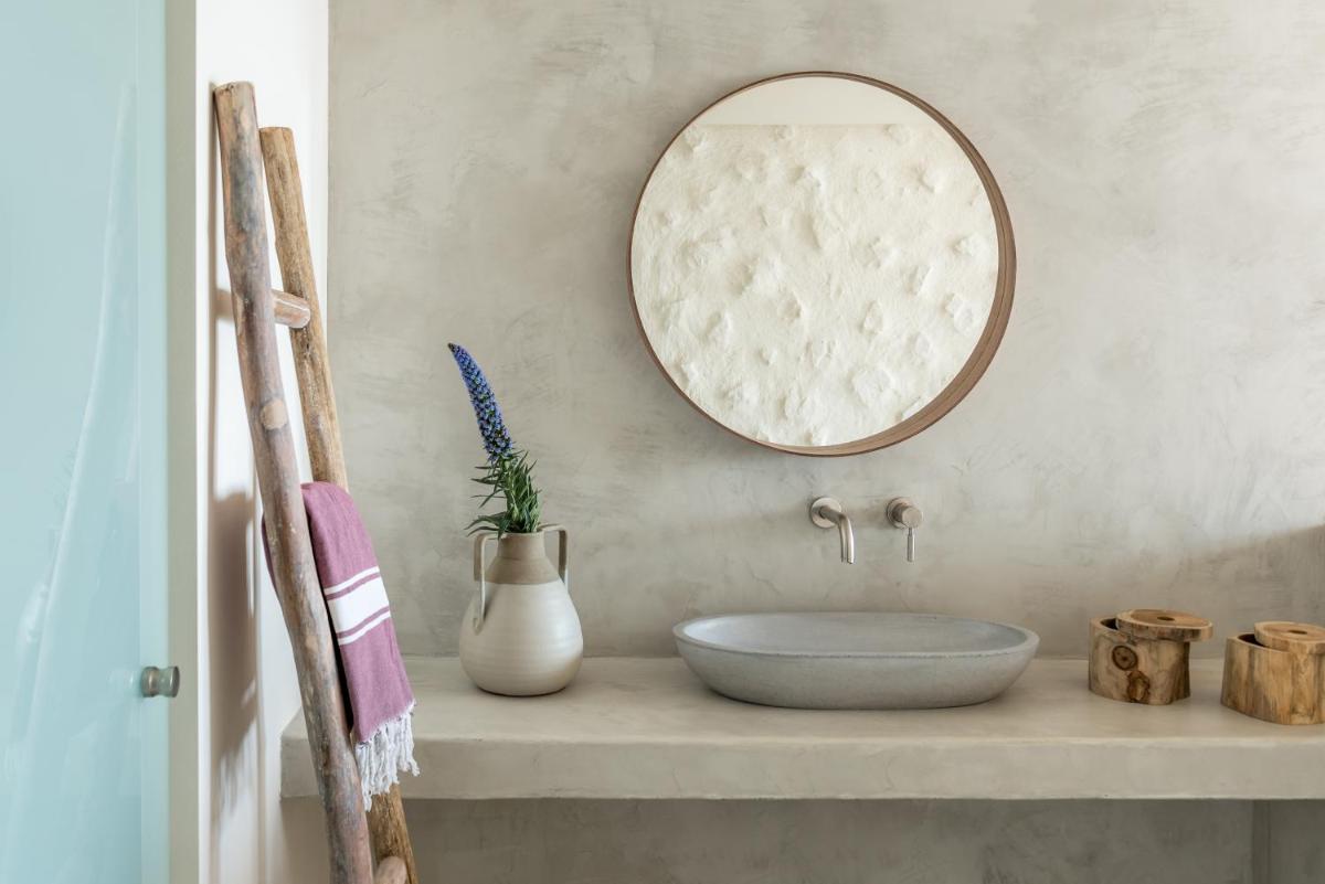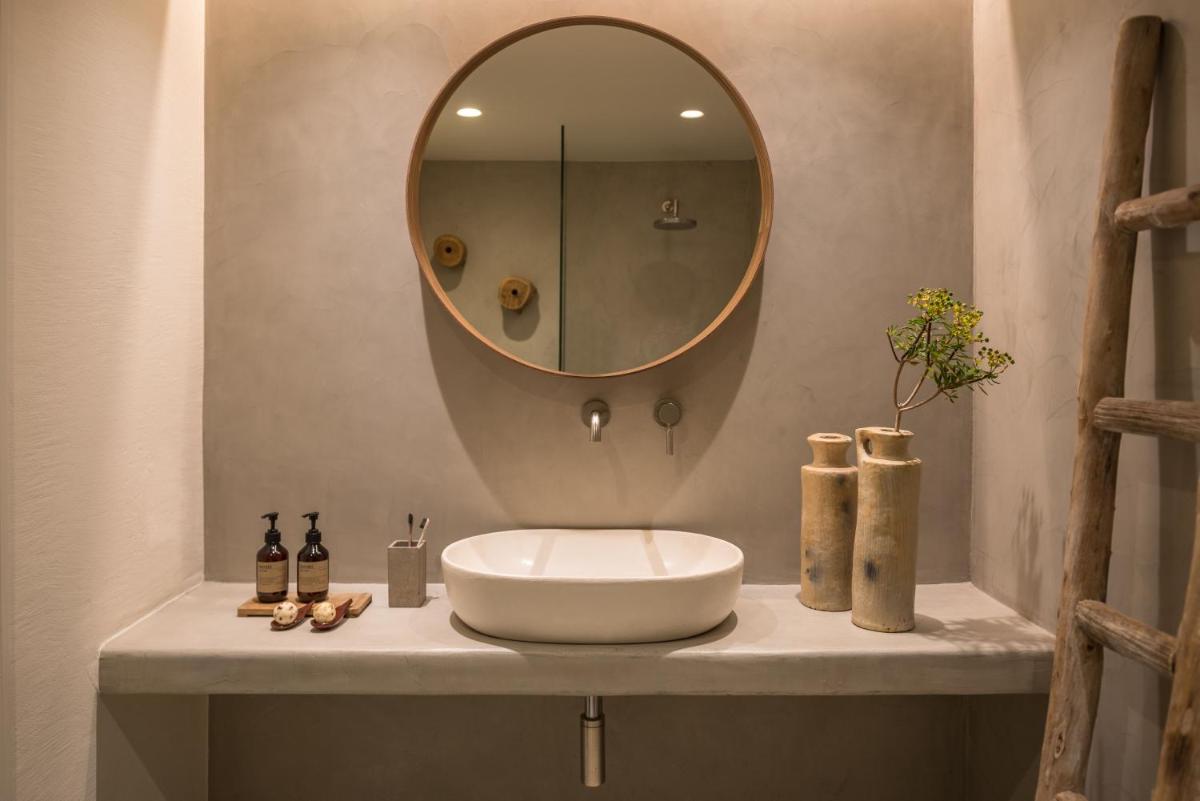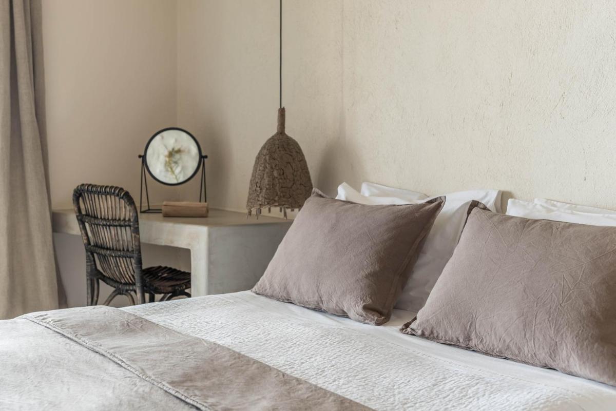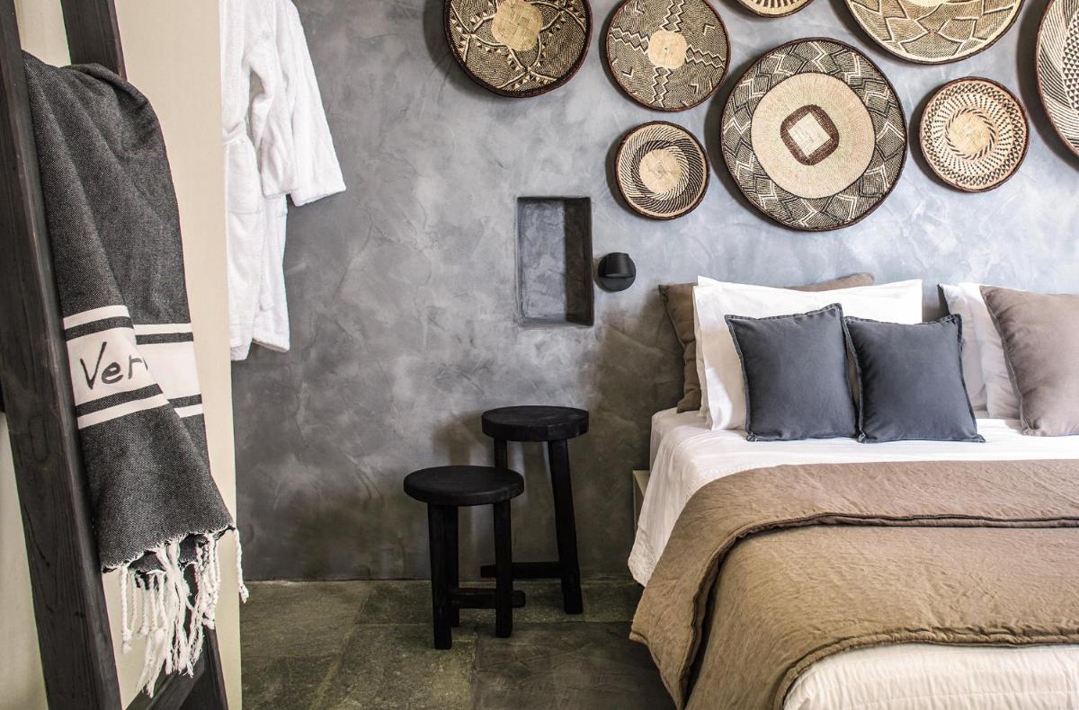 Il design è fedele alla tradizione cicladica, con pareti bianche, pietra locale e arredi eleganti ma essenziali. Le suite e le ville sono progettate per massimizzare la vista, offrendo terrazze private ampie da cui è possibile godere del silenzio e dell'immensità del mare. L'intimità e la privacy sono garantite in ogni alloggio.