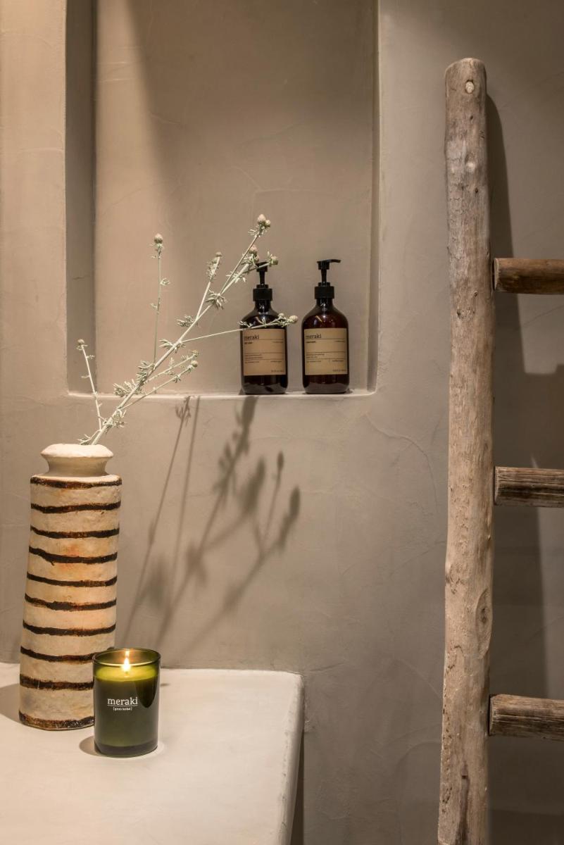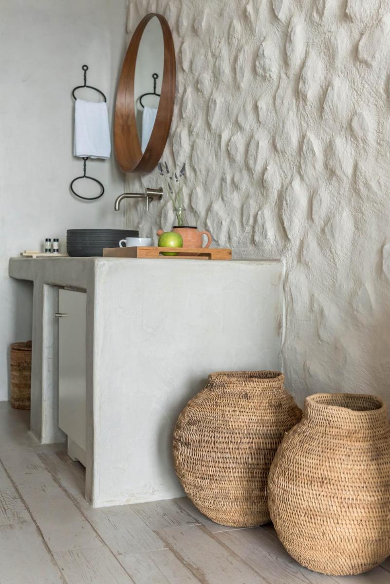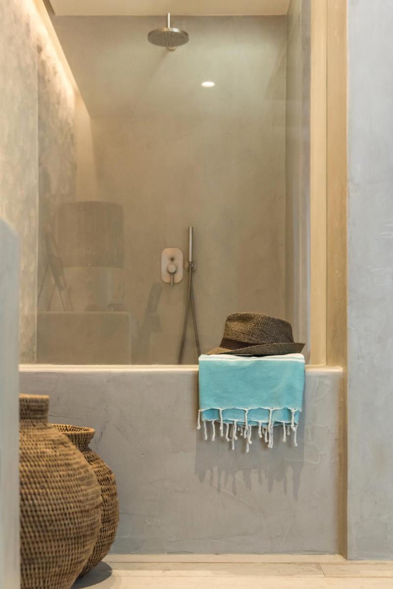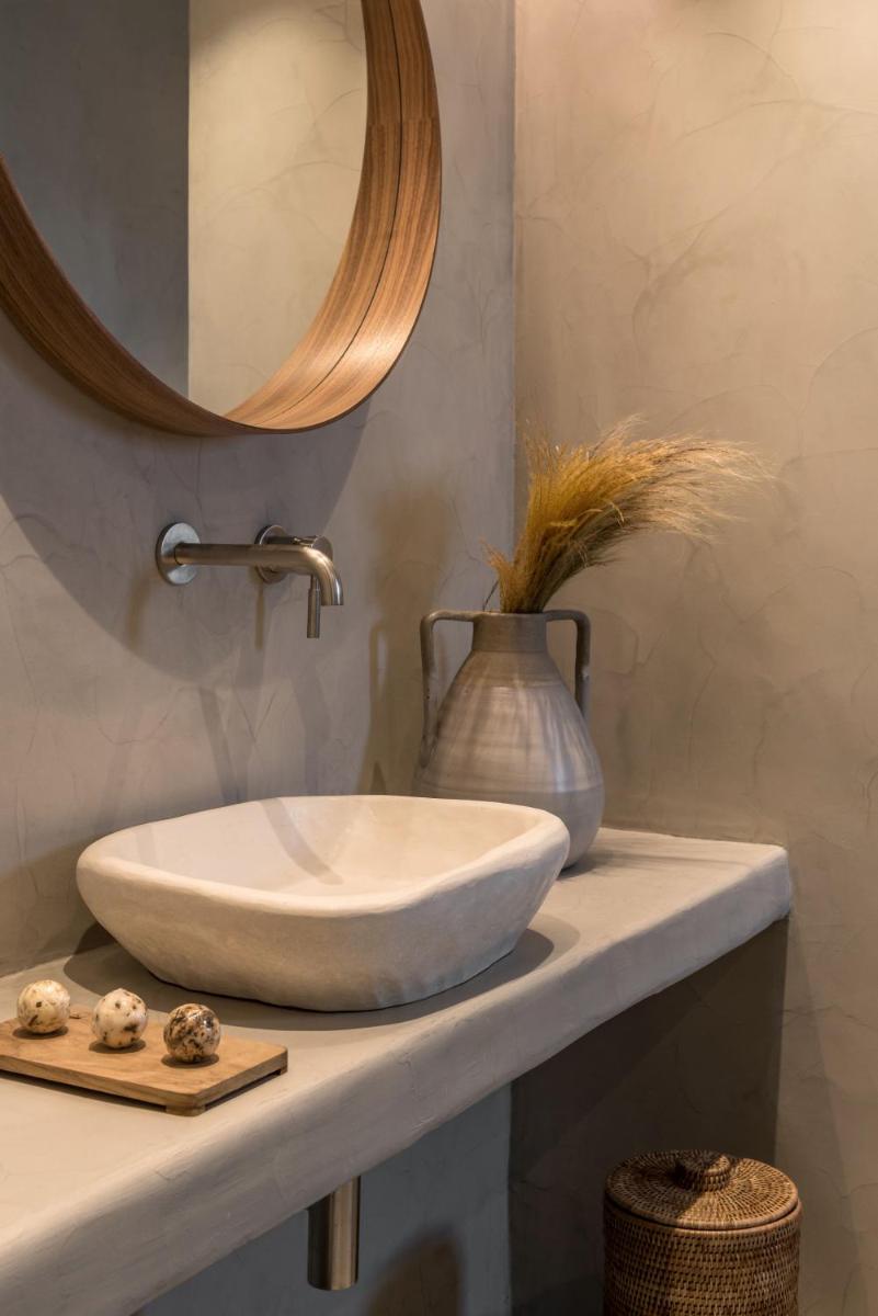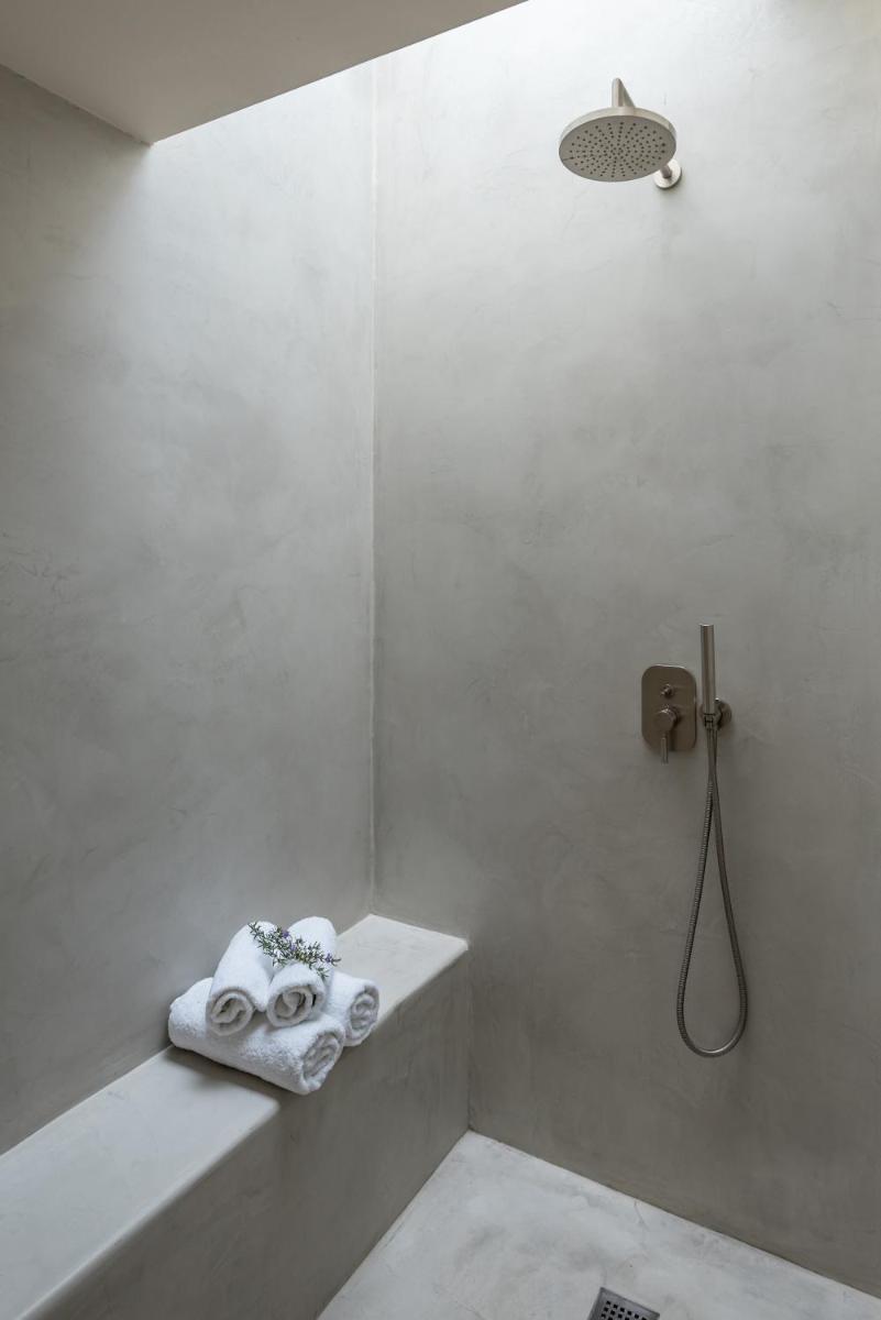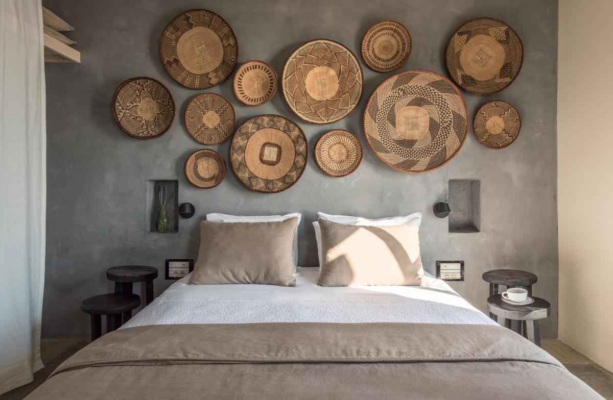 Il design è fedele alla tradizione cicladica, con pareti bianche, pietra locale e arredi eleganti ma essenziali. Le suite e le ville sono progettate per massimizzare la vista, offrendo terrazze private ampie da cui è possibile godere del silenzio e dell'immensità del mare. L'intimità e la privacy sono garantite in ogni alloggio.