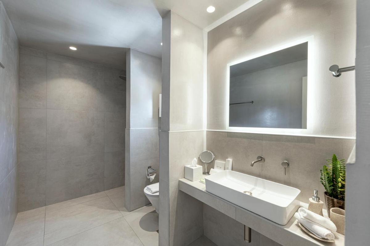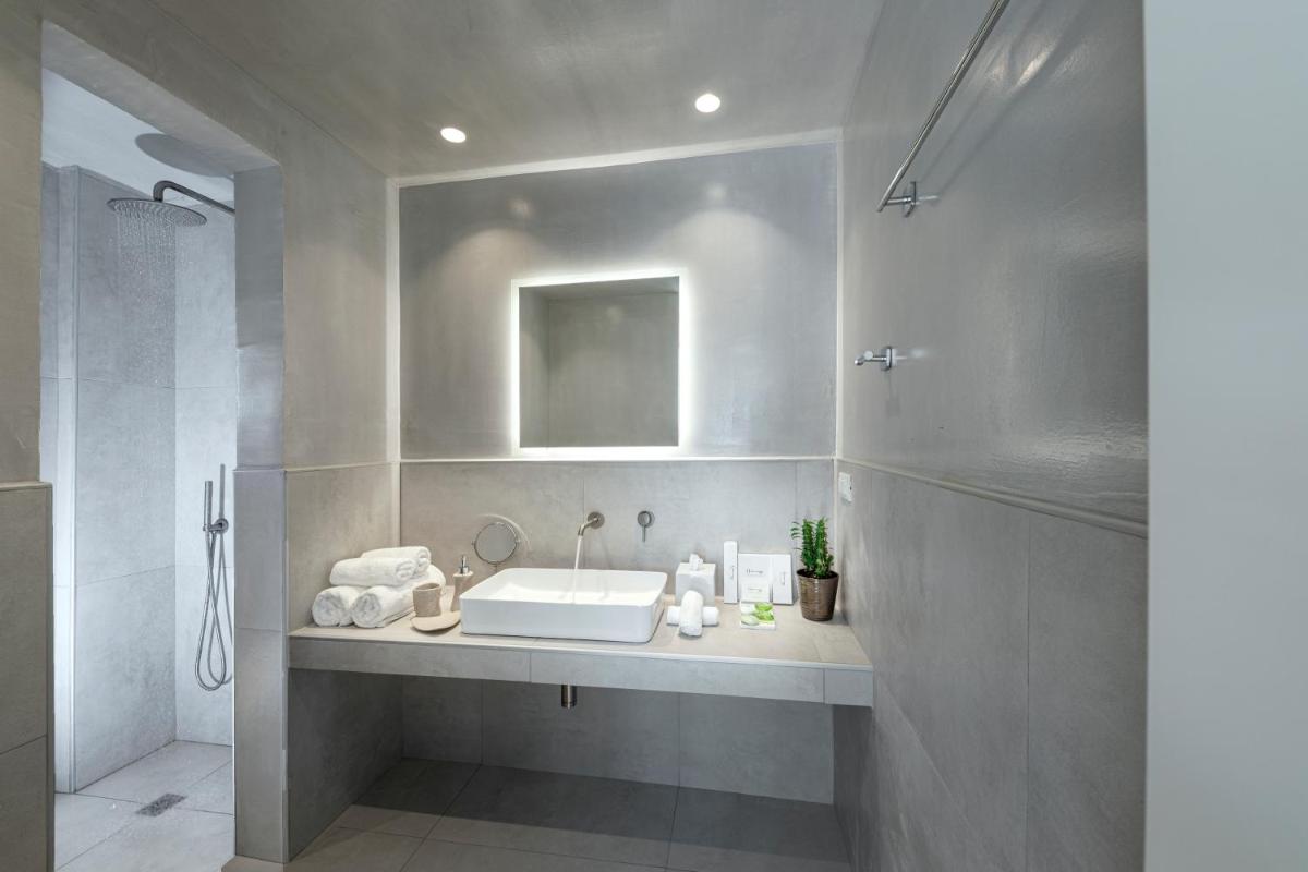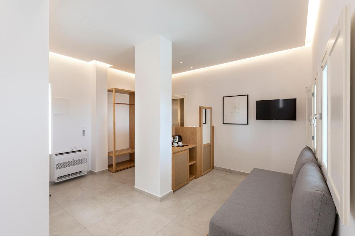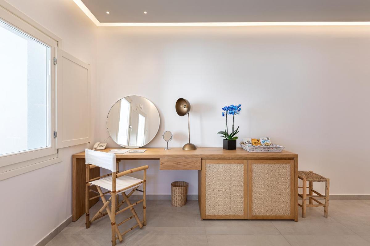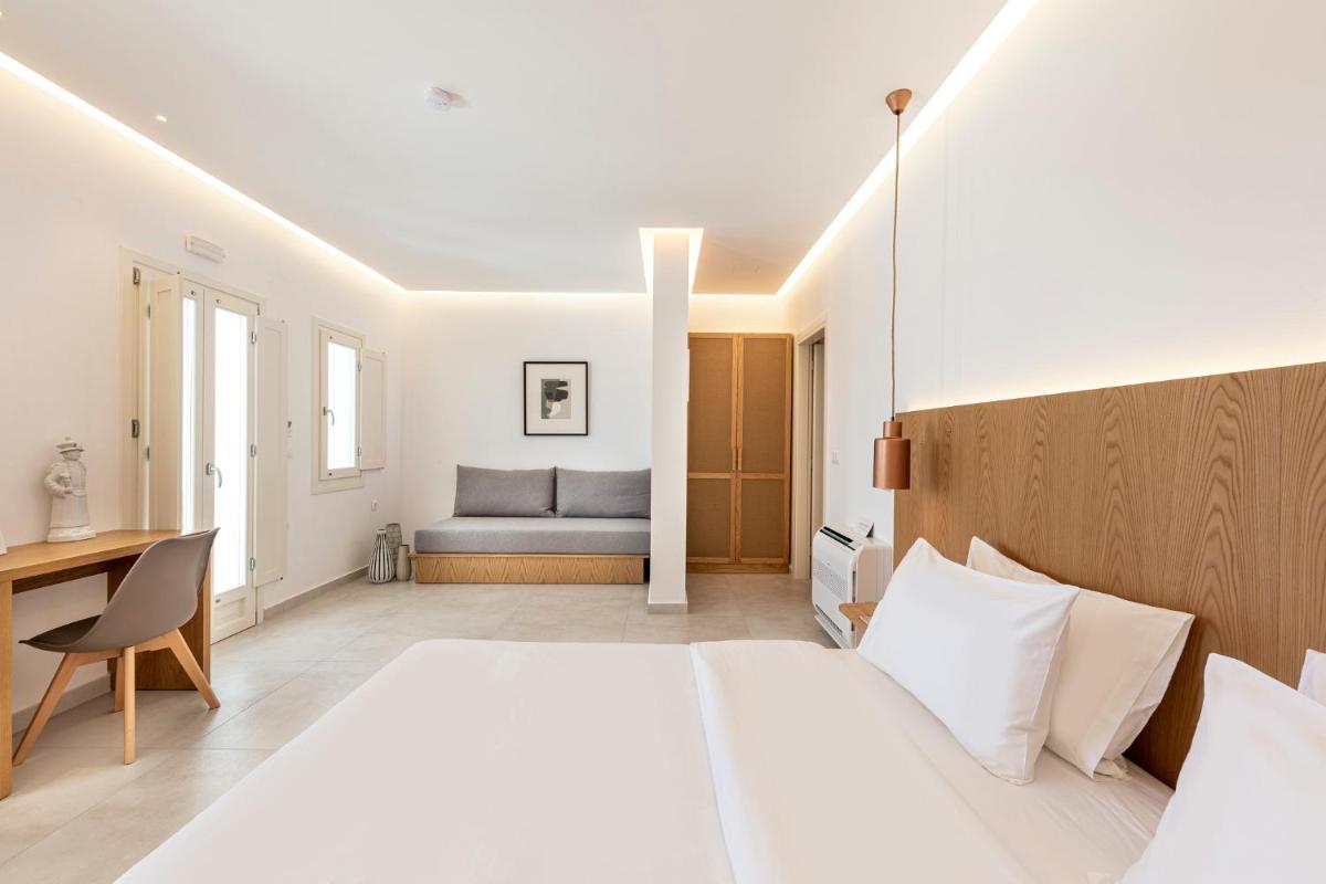 Le sistemazioni del Secret View sono caratterizzate da un design moderno che fonde l'estetica minimalista con l'architettura cicladica. I colori neutri, i materiali naturali e le linee pulite creano un ambiente rilassante e sofisticato. Molte camere e suite vantano Jacuzzi o piscine private esterne, ideali per godersi il sole e la vista in totale riservatezza, un lusso che definisce l'esperienza.