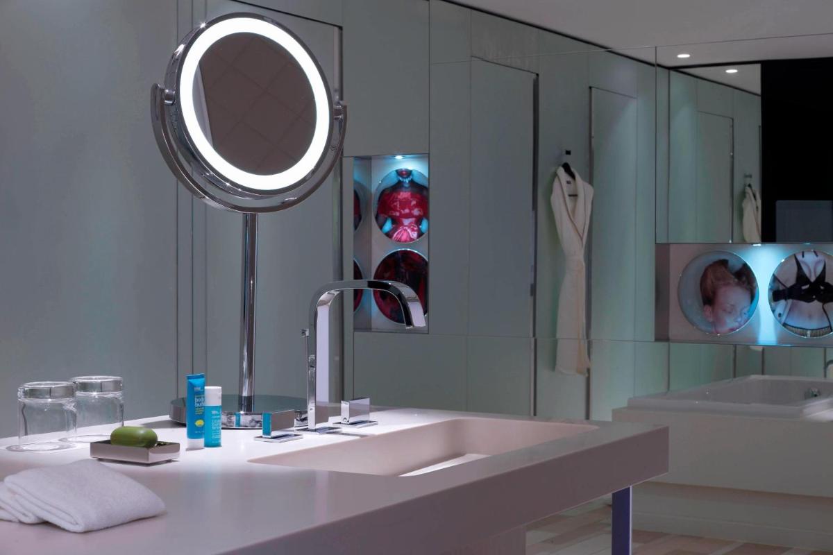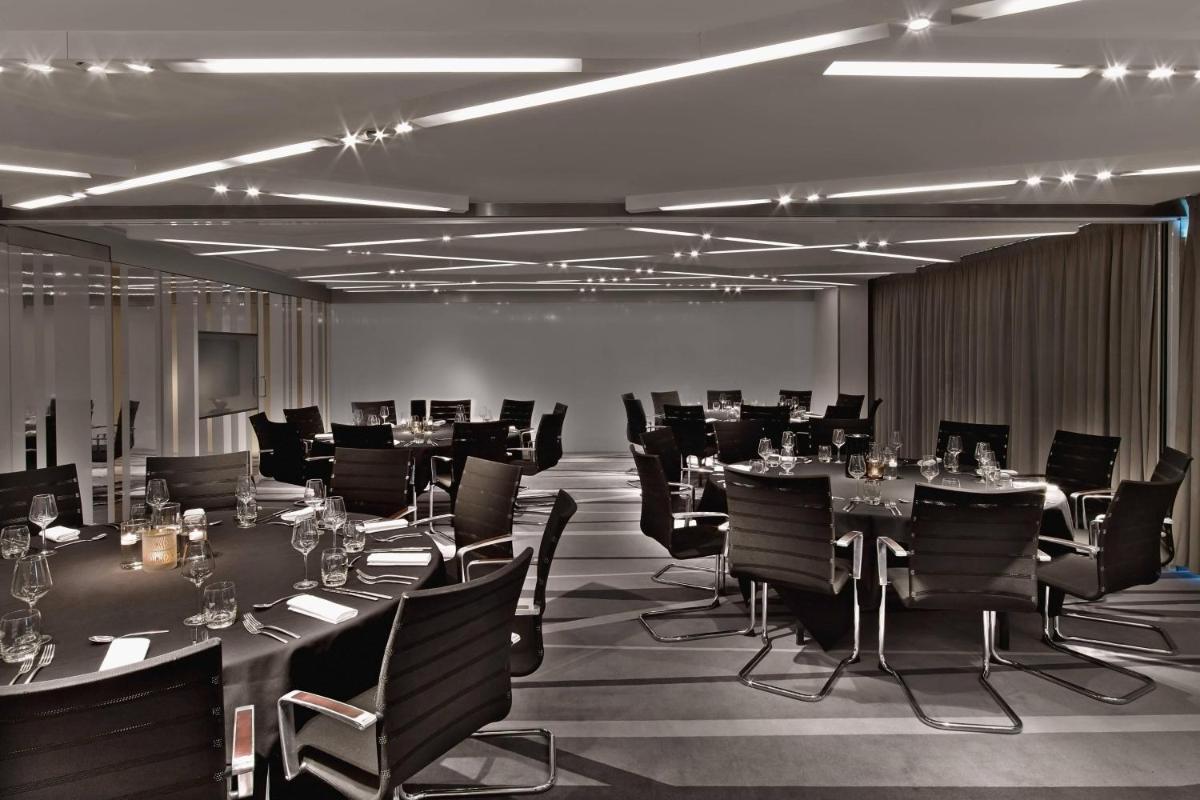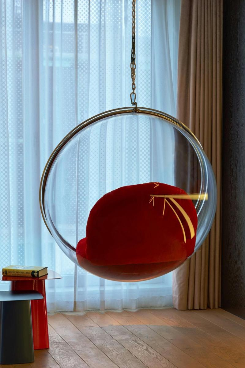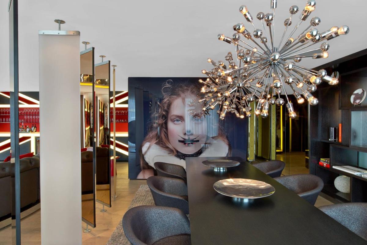 Gli interni sono caratterizzati da un design giocoso, colori intensi e installazioni artistiche provocatorie, riflettendo la vicinanza ai teatri e ai locali notturni. La filosofia del design è incentrata sulla fusione di glamour, musica e tecnologia per creare un'atmosfera sempre in fermento.