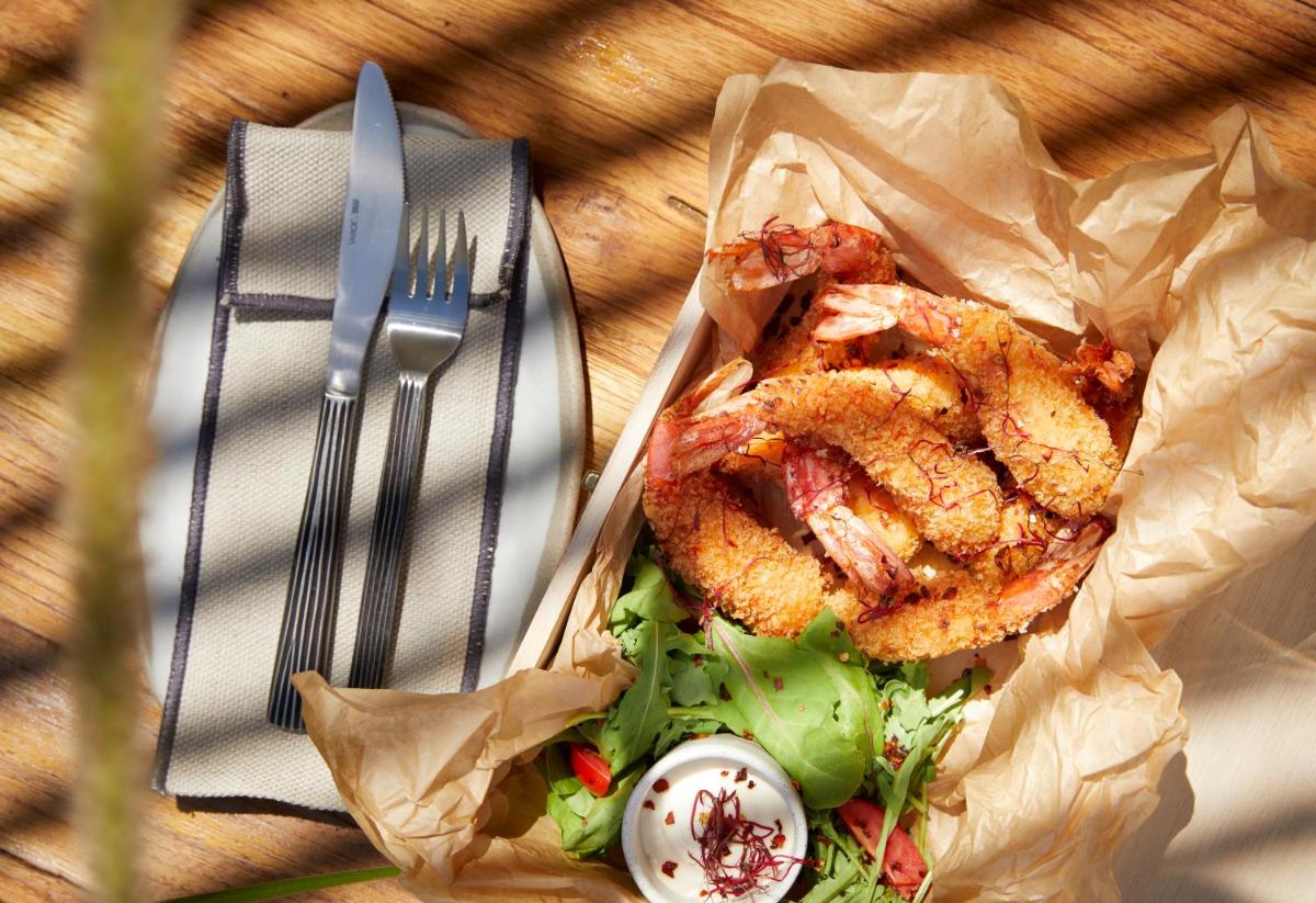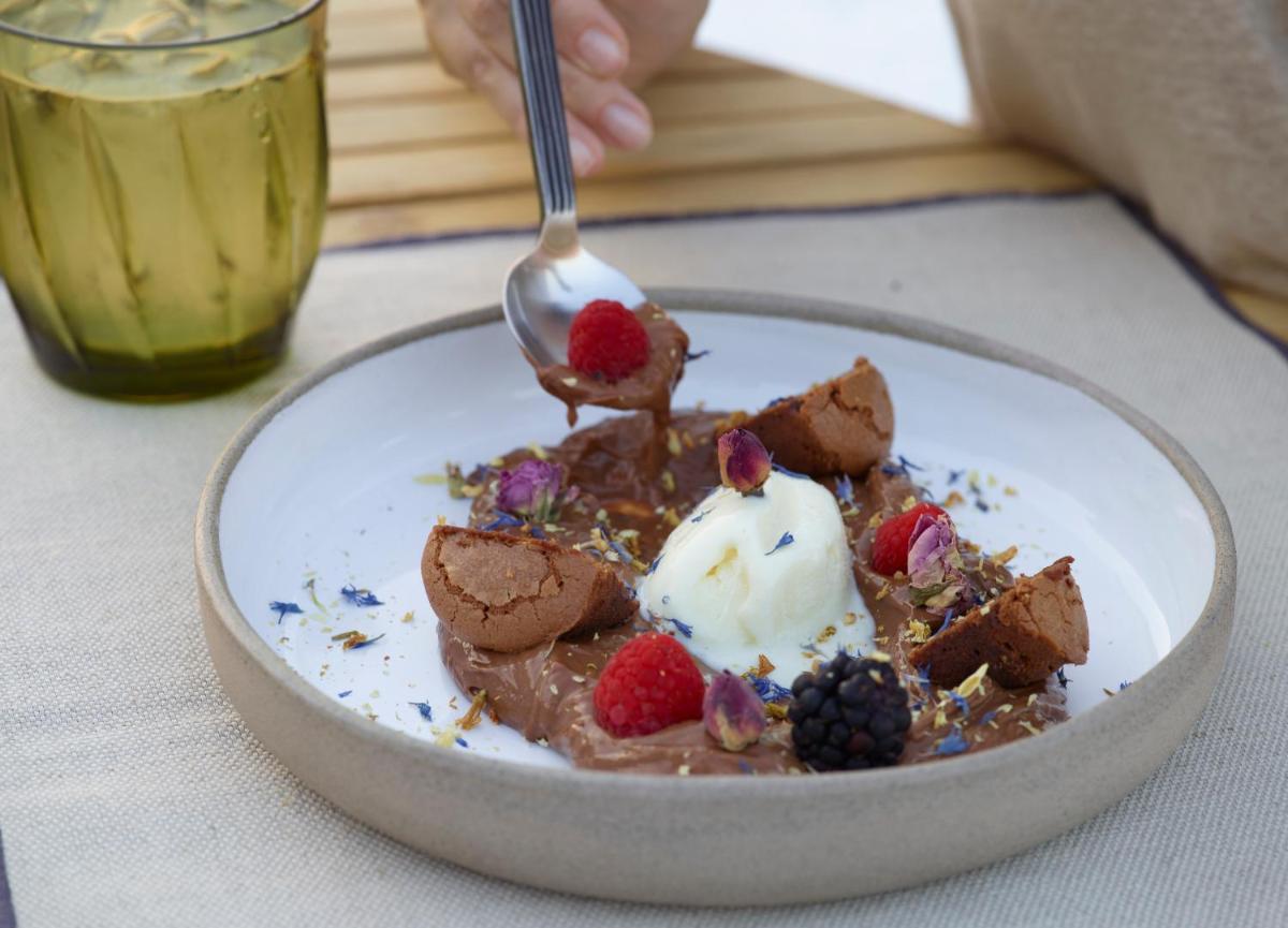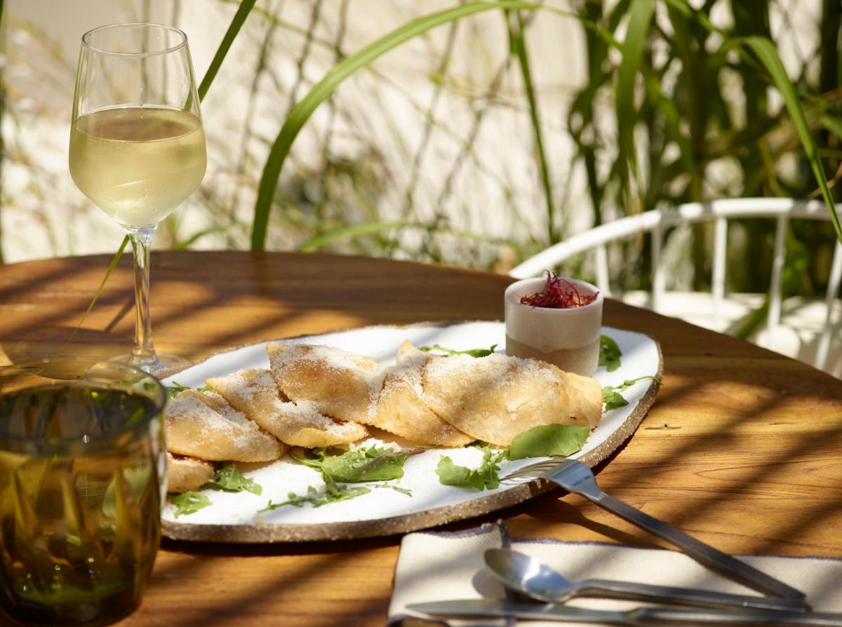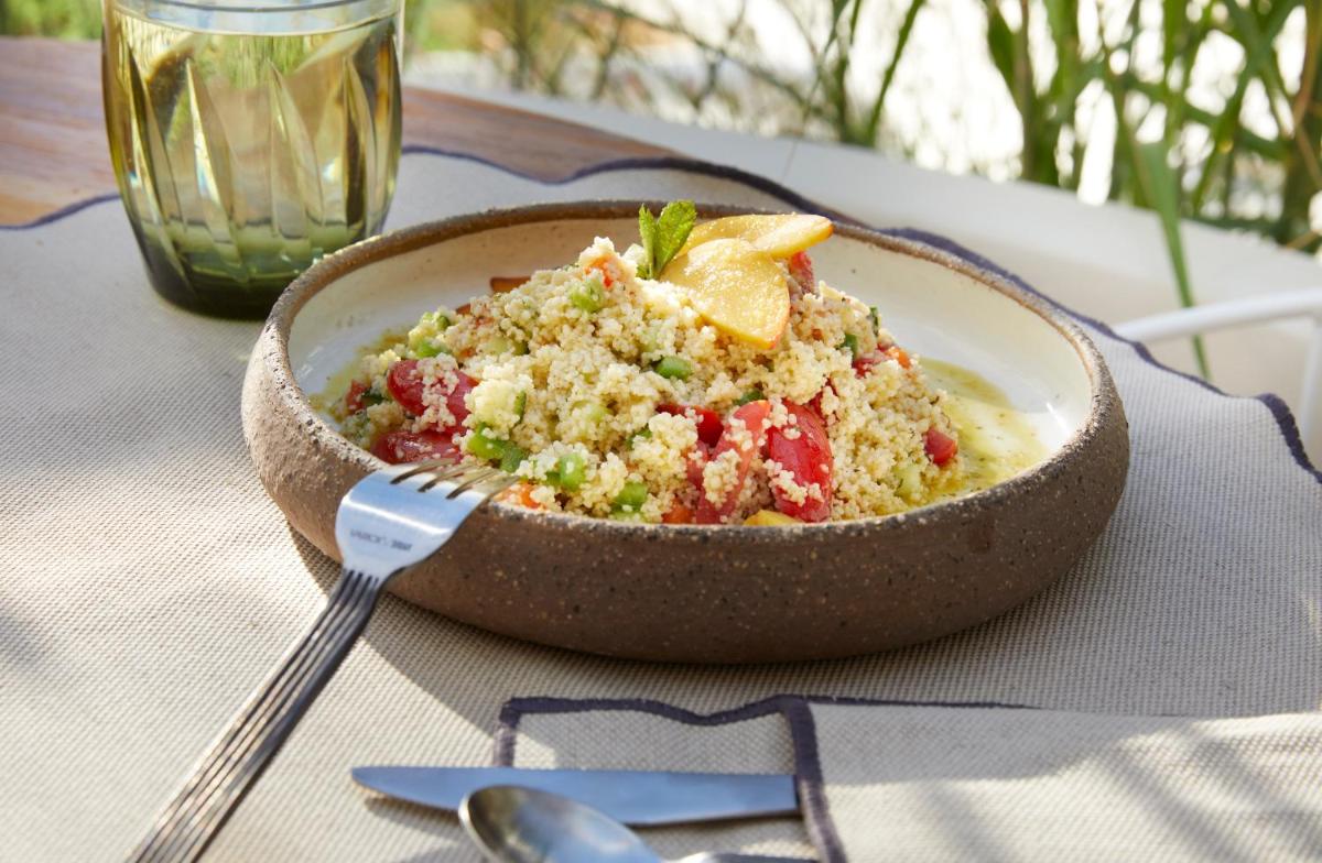 La giornata inizia con una ricca colazione à la carte, che celebra i sapori locali e le specialità greche fresche. L'attenzione alla qualità e alla provenienza degli ingredienti rende questo pasto un'autentica esperienza culinaria. Il bar adiacente offre cocktail e bevande rinfrescanti da gustare ammirando il paesaggio cicladico.