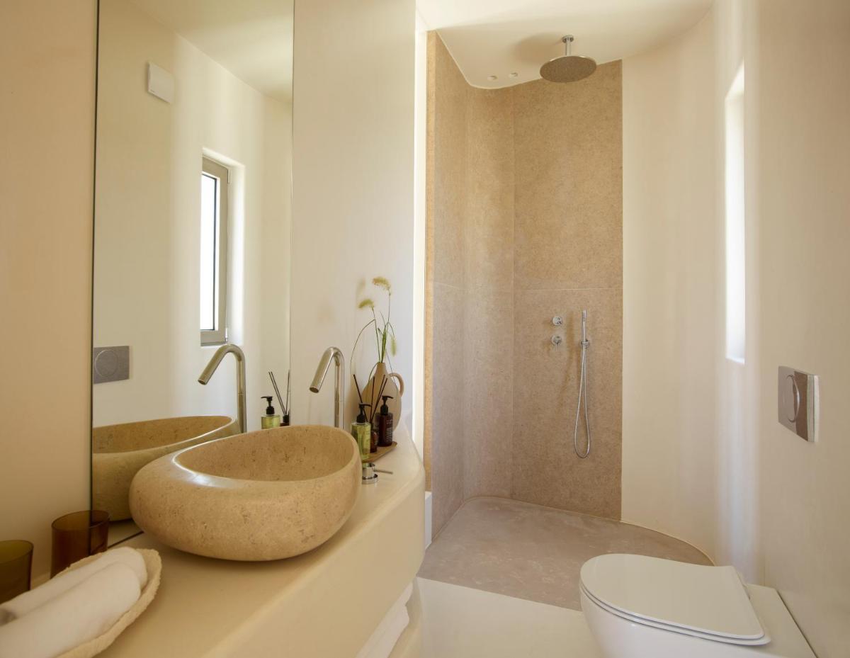 L'architettura è in perfetta armonia con l'ambiente circostante, dominata dal bianco candido e da linee pulite che mettono in risalto la luce naturale. Le suite sono spaziose e arredate con gusto squisito, utilizzando materiali naturali e tocchi di colore delicati per creare un'atmosfera rilassante e sofisticata. Molte offrono vasche idromassaggio o piscine private.