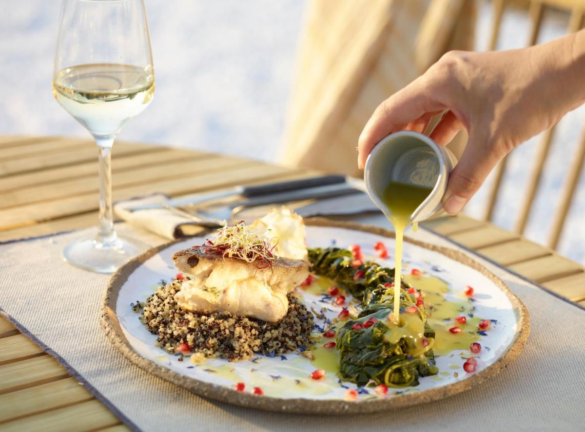 Il cuore della socialità è l'area della piscina principale, che offre una vista affascinante sulla baia. Intorno, comodi lettini invitano gli ospiti a godersi il sole in totale tranquillità. L'hotel pone un forte accento sul benessere, con la possibilità di organizzare trattamenti di massaggio e yoga, volti al totale ripristino dell'equilibrio.